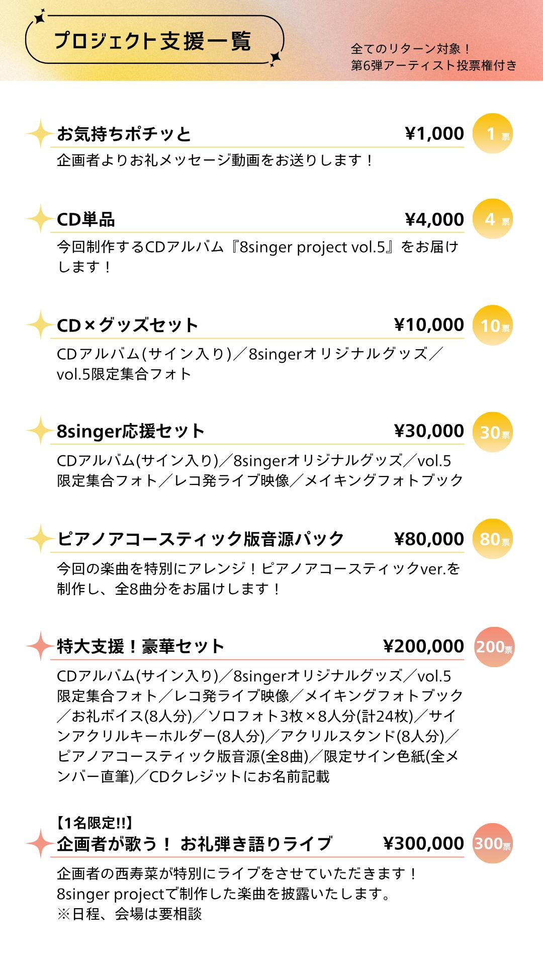 ①8singerをまるっと応援できる ◆プロジェクト支援◆