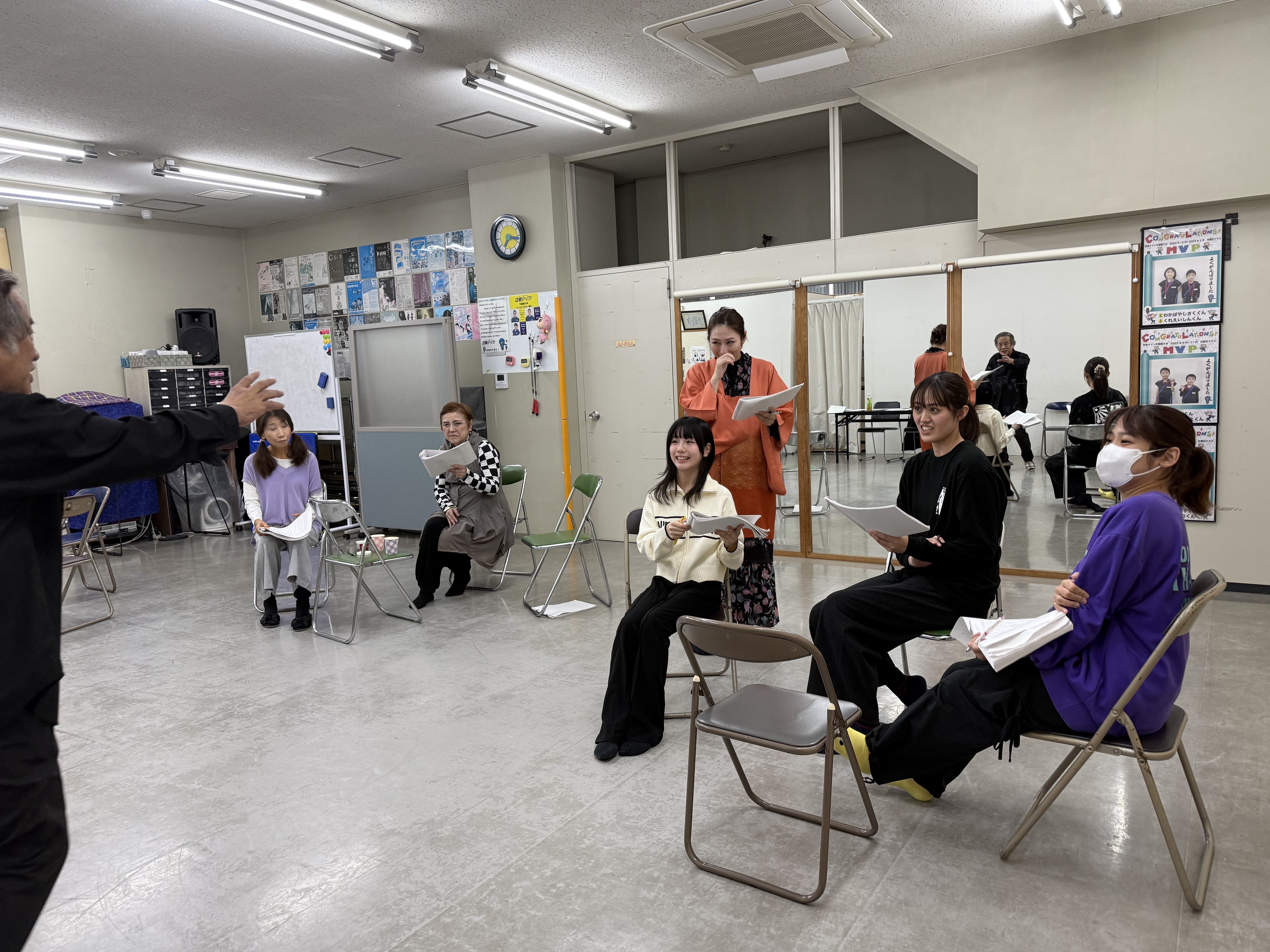2025/11/27 10:35【第3章・1970年 万博編】大御所キャストの存在感に、稽古場が笑いと熱気に包まれました!1970年の大阪万博を舞台にした第3章は、作品の中でも特に“人間味”と“勢い”にあふれるシーンです。この日は、大御所キャストの方が稽古場に入り、台詞合わせの段階からすでに周囲を巻き込みながら場をつくってくださいました。写真の通り──柔らかな笑顔あり、真剣な語りあり、そして思わず出演者たちが引き込まれてしまう迫力もあり、稽古場そのものが“1970年の熱気”を帯びていくようでした。若いキャストも、大御所の演技に圧倒されつつ大きな刺激を受け、章全体がぐっと立ち上がってきています。本番まで残りわずか。このシーンが舞台上でどう立ち上がるのか、どうぞ楽しみにしていてください。応援してくださる皆様のおかげで、作品が一つ一つ形になっていくのを強く感じています。引き続き温かいご支援をどうぞよろしくお願いいたします。 もっと見る