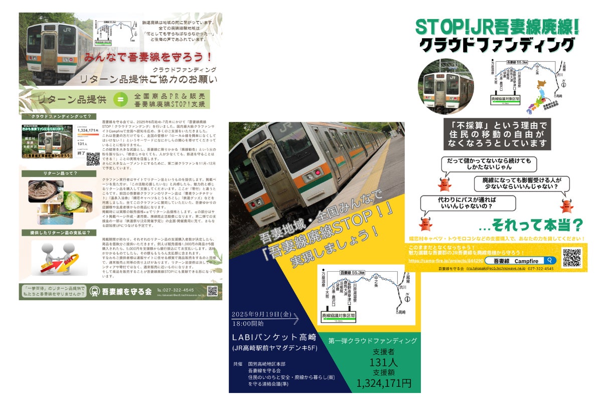 まずはこの現状を多くの方に知ってもらうため、吾妻線廃線STOP!クラファン第一弾(2025年6月-7月)を掲載しました。