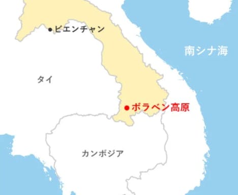 東南アジアの内陸国であるラオス南部に標高1,000メートルを超える霧深いボラベン高原は、昼夜の寒暖差が大きく、火山灰土壌で、コーヒーの生産に適した地域です。