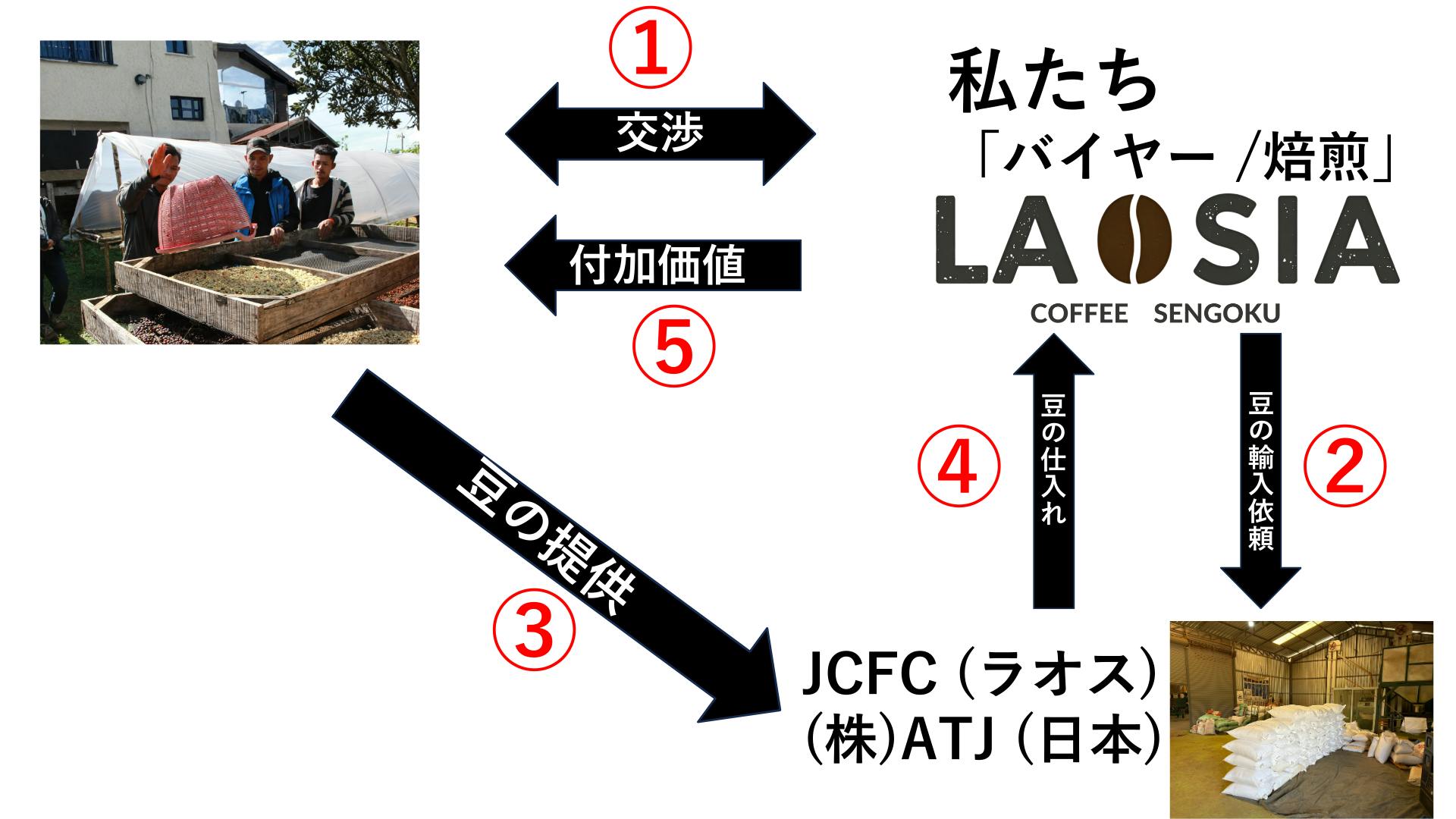 中間業者は最小限に抑えて、透明性の高いバリューチェーンに基づき、ラオスコーヒーを日本ひいては世界に広めてまいります。