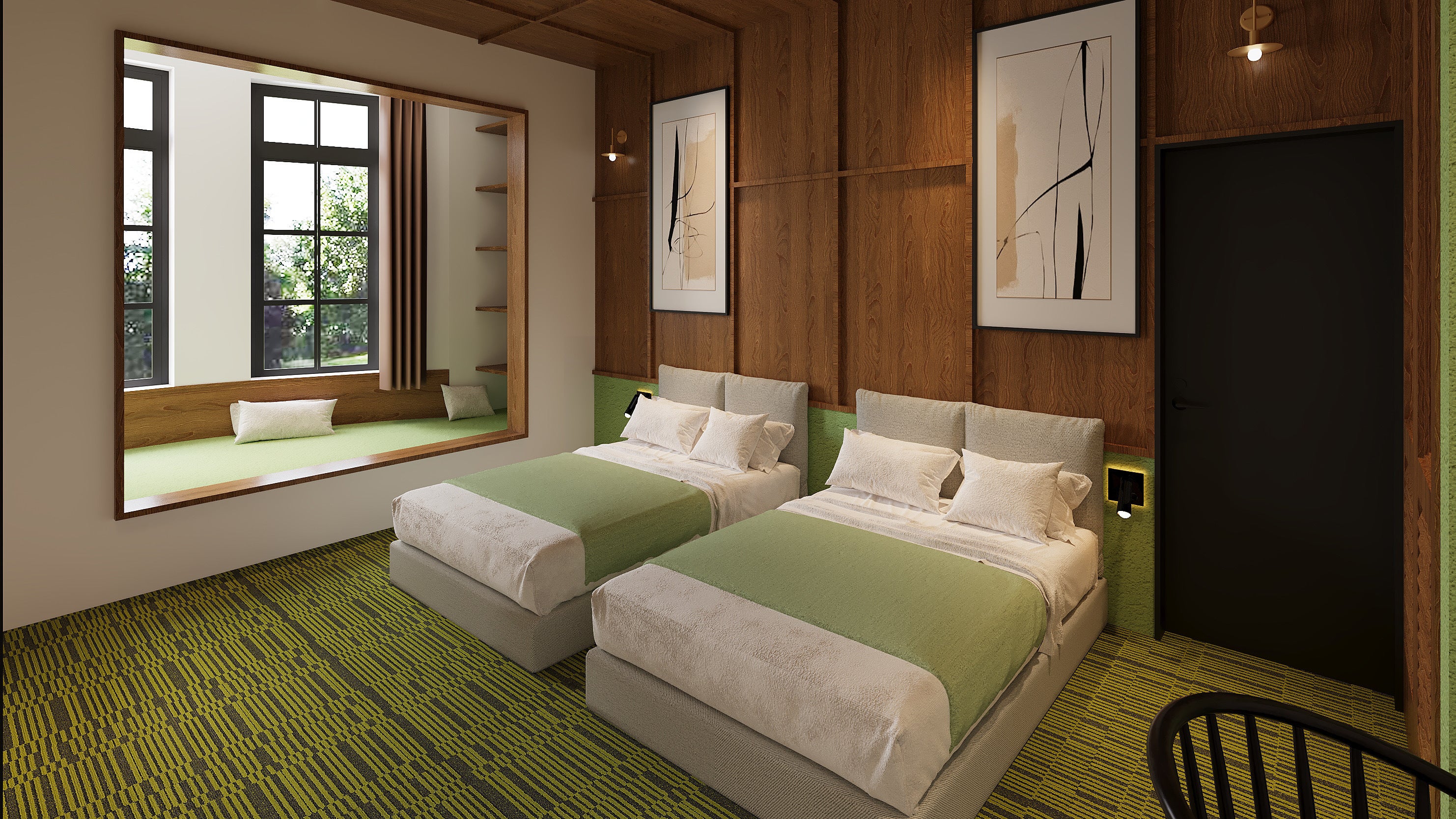 弊社とは別の経営ですが、2階は宿泊施設、3階が宿泊客向けのラウンジ、シェアオフィス、イベントスペースとして稼働します。