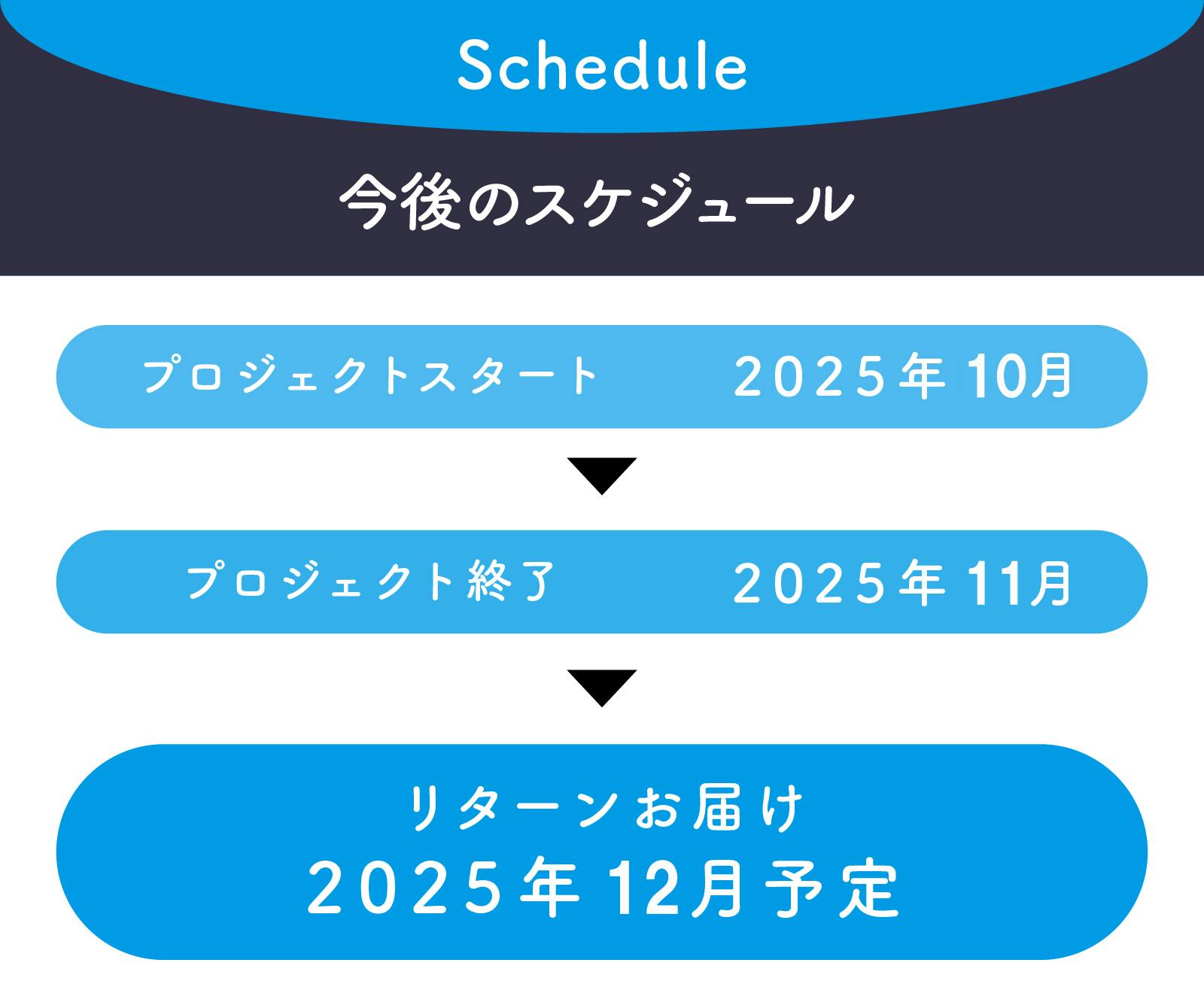 ◯ 引渡し時期: 各リターン詳細に記載の発送予定月を引き渡し時期とします。但し、開発・生産状況によって遅れが生じる場合がありますのでその際は当プロジェクトページ内の「活動報告」または支援者へのメール等で連絡します。