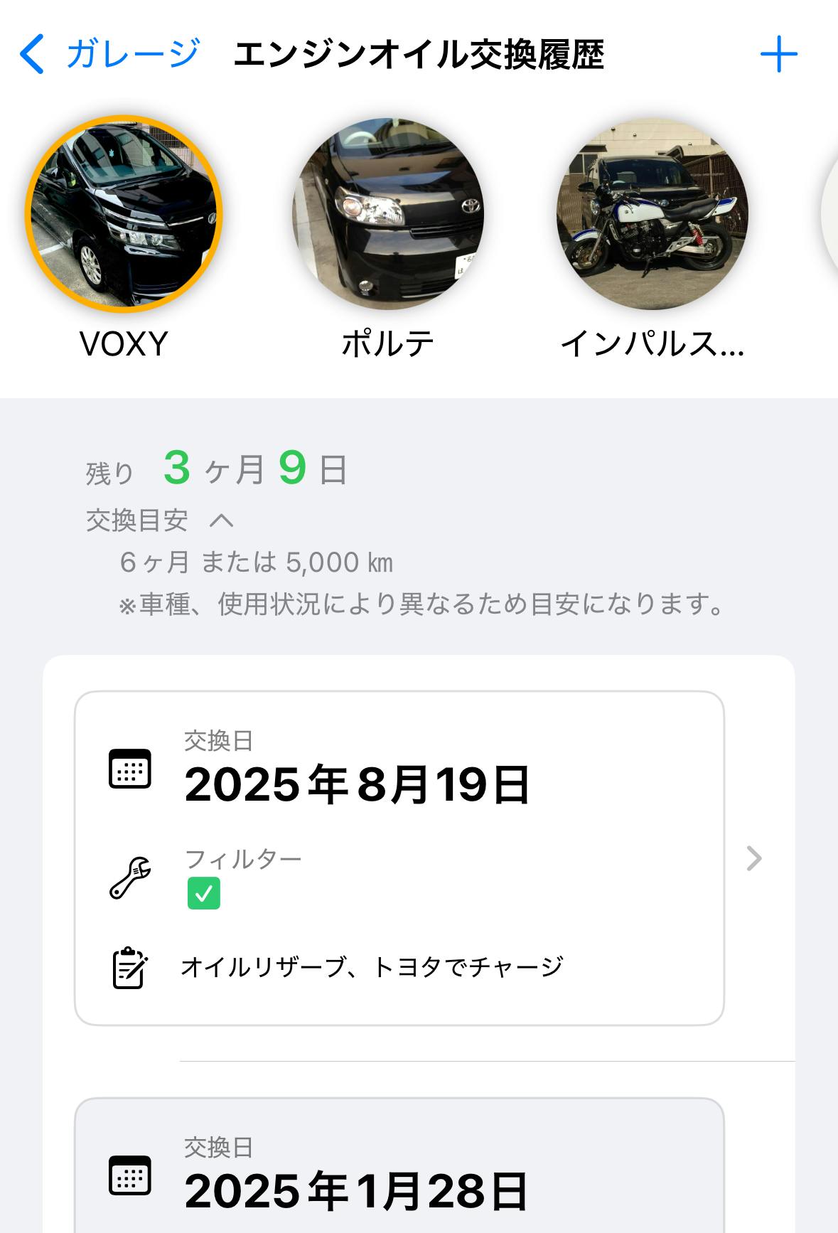 2025年11月:各メンテナンス項目の交換間隔を、愛車ごとに設定できるようにします。