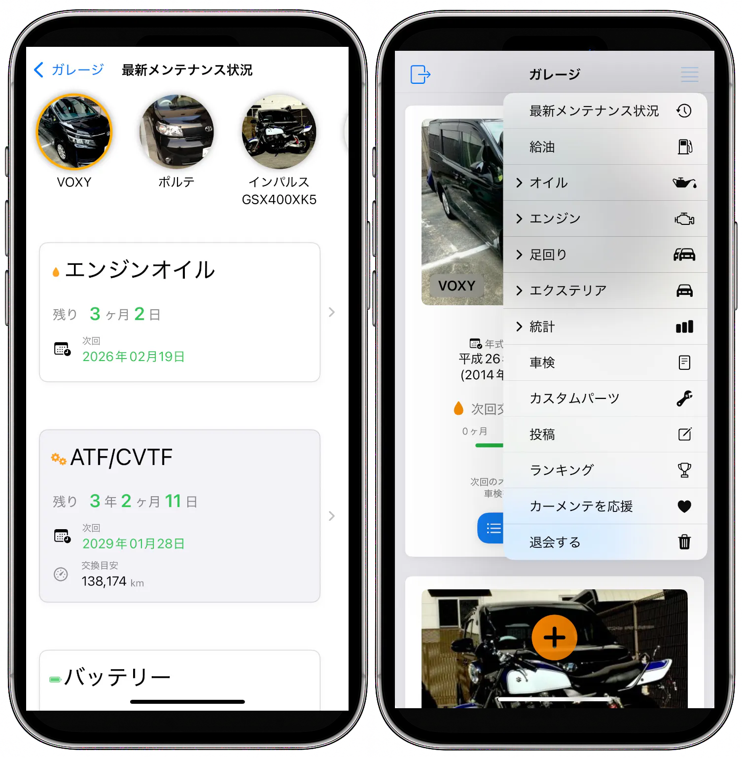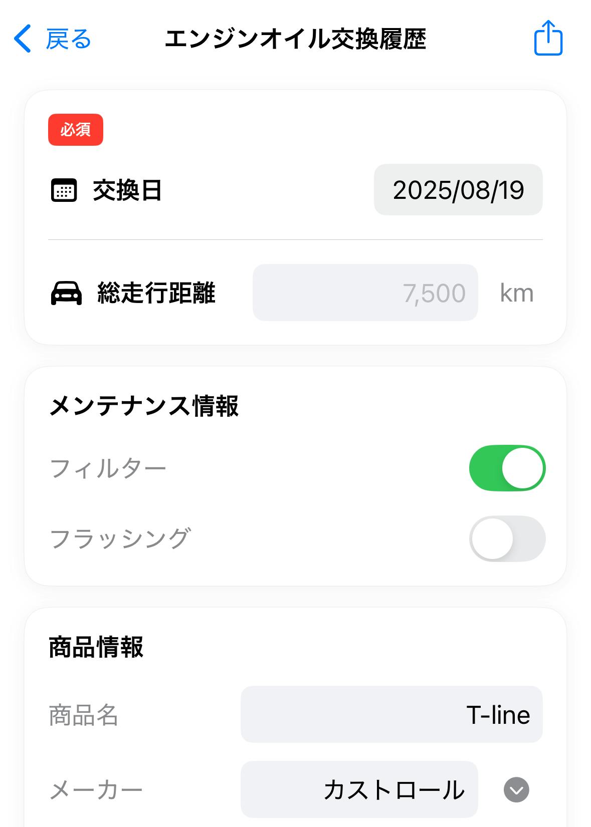 愛車のメンテ情報をまとめて管理し、次の交換時期がひと目で分かるようになります。