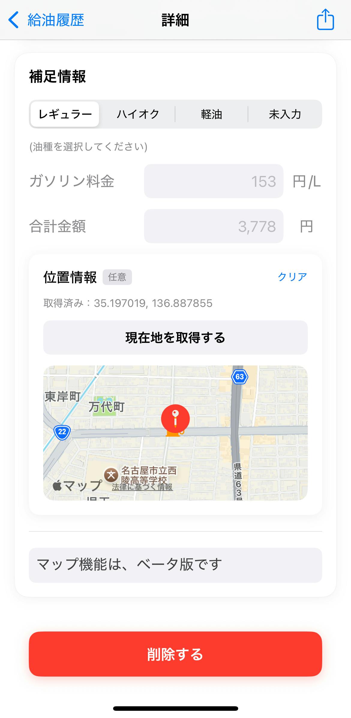 給油時の位置情報をミニマップとして記録できるようになりました。