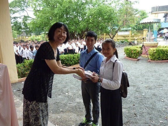 一昨年日本に招いた学生のうち、リンさんは、私が11年前にバテイを訪問した際、奨学金を得た生徒の代表としてあいさつしてくれた子どもたちの1人で、当時11歳でした。家庭の事情で苦しい時期もありながらも、母親の献身のサポートやアルバイトなどをして、大学に通っています。私たちの奨学金が彼女の原動力の1つになったことは本当にうれしいことです。
