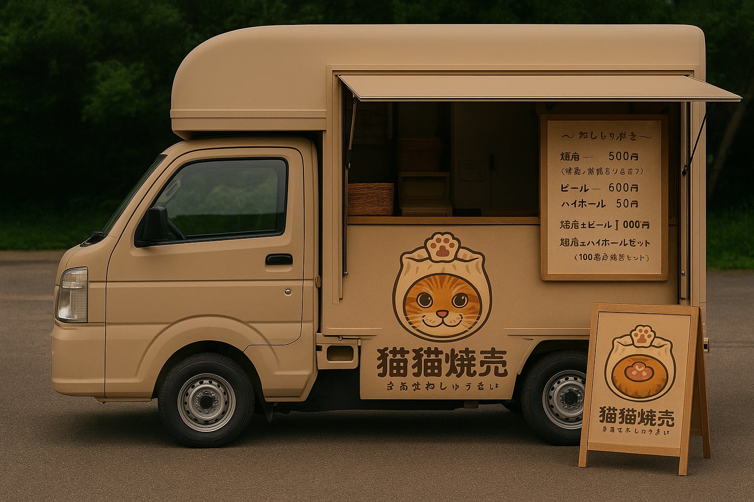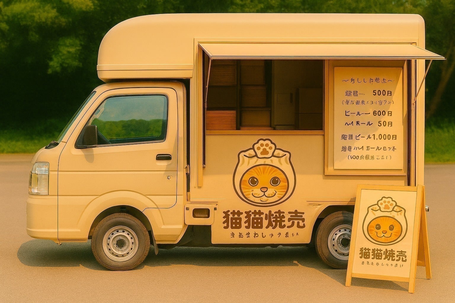 新潟は美しい自然と温かい人々が魅力の地です!そんな中で、何か地域に貢献できることはないかと考えた結果、キッチンカーという形での飲食提供を思いつきました。猫をモチーフにしたのは、猫が大好きなことはもちろん、猫の持つ癒しの力を信じており、訪れる方々にリラックスした時間を提供したいと思ったからです。猫の肉球を乗せました!ぷにぷにです!モデルはうちの猫のてんちゃんです!