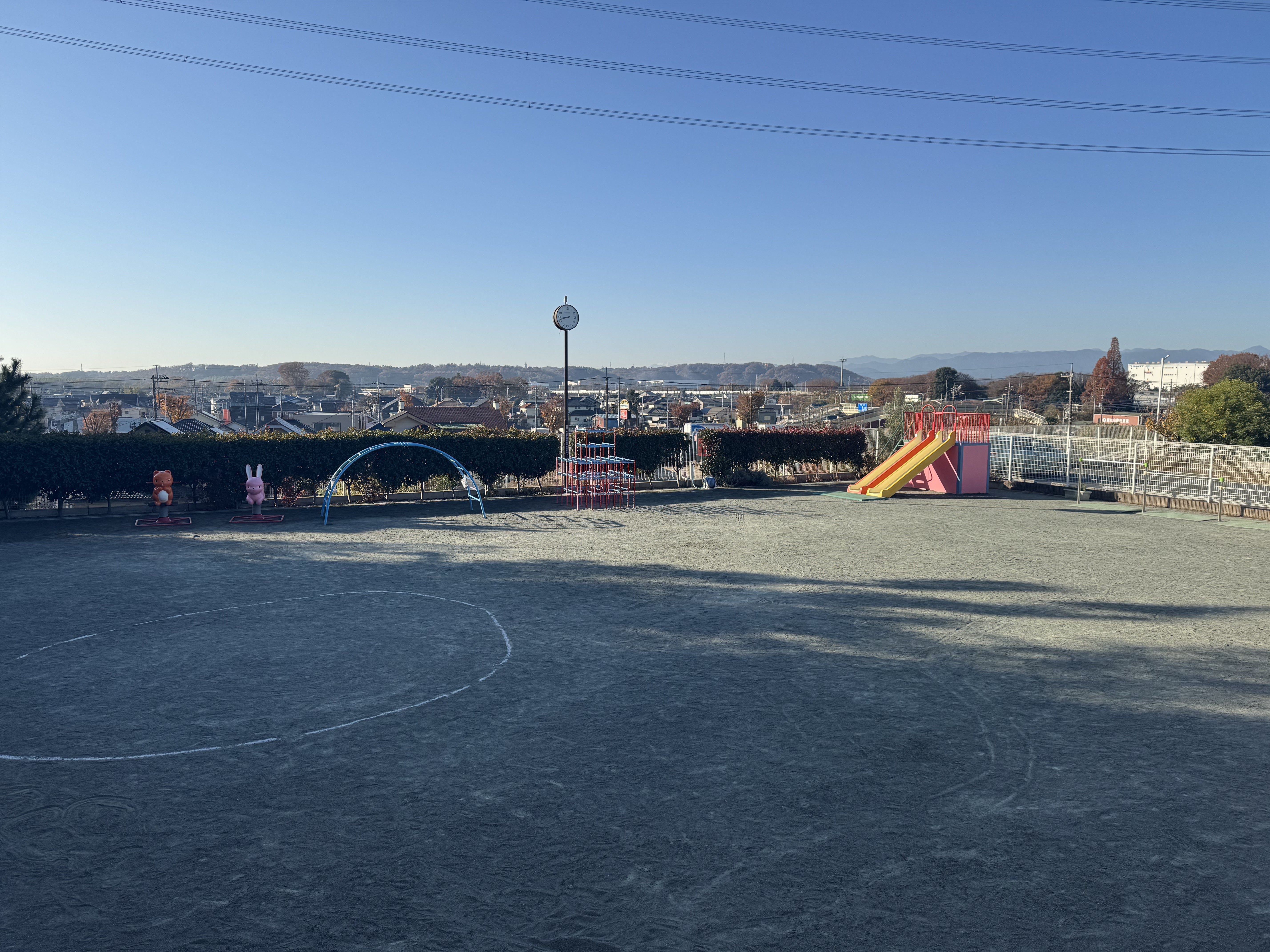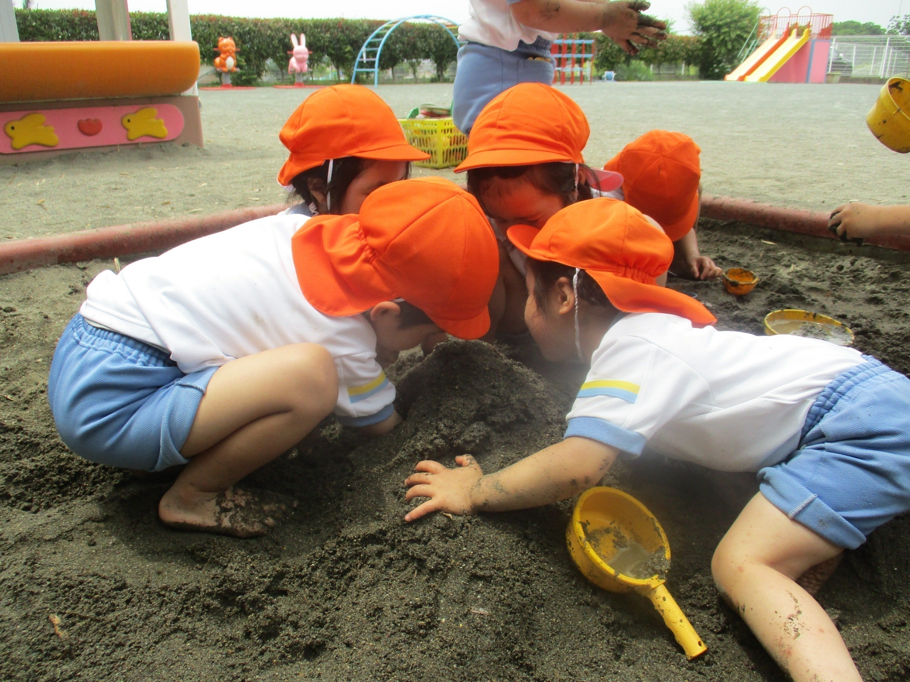 現在は水はけのよい、いわゆるグランド型の園庭ですが、ここでは地面に穴を掘ったり、泥団子を作ったりという遊びができません。