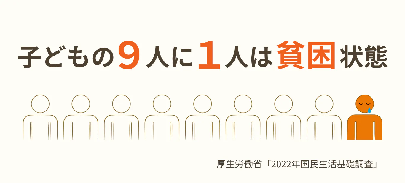 5年間の活動で、子ども達のこういった切実なお話を聞いてきました。日本では今、17歳以下の子どもの9人に1人が、貧困状況で生活しています。