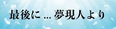 夢現人の活動に是非ともご賛同いただきご協力いただきますよう、よろしくお願い申し上げます。