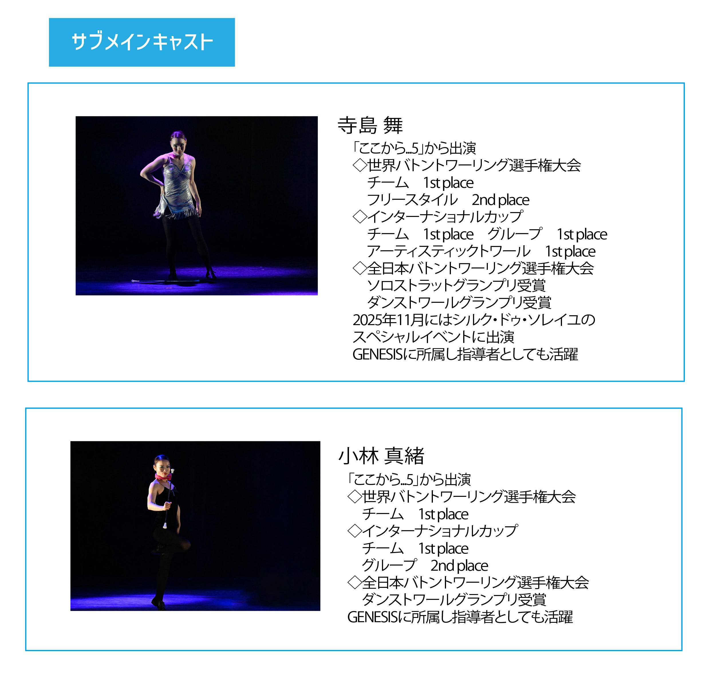 「ここから...♾️」が目指すものは、長年選手権で磨きをかけた技に人生経験をプラスしたからこそできる演技。観る人を魅了するバトントワーリングの妙技に表現力を加え、ショーとして確立していく。