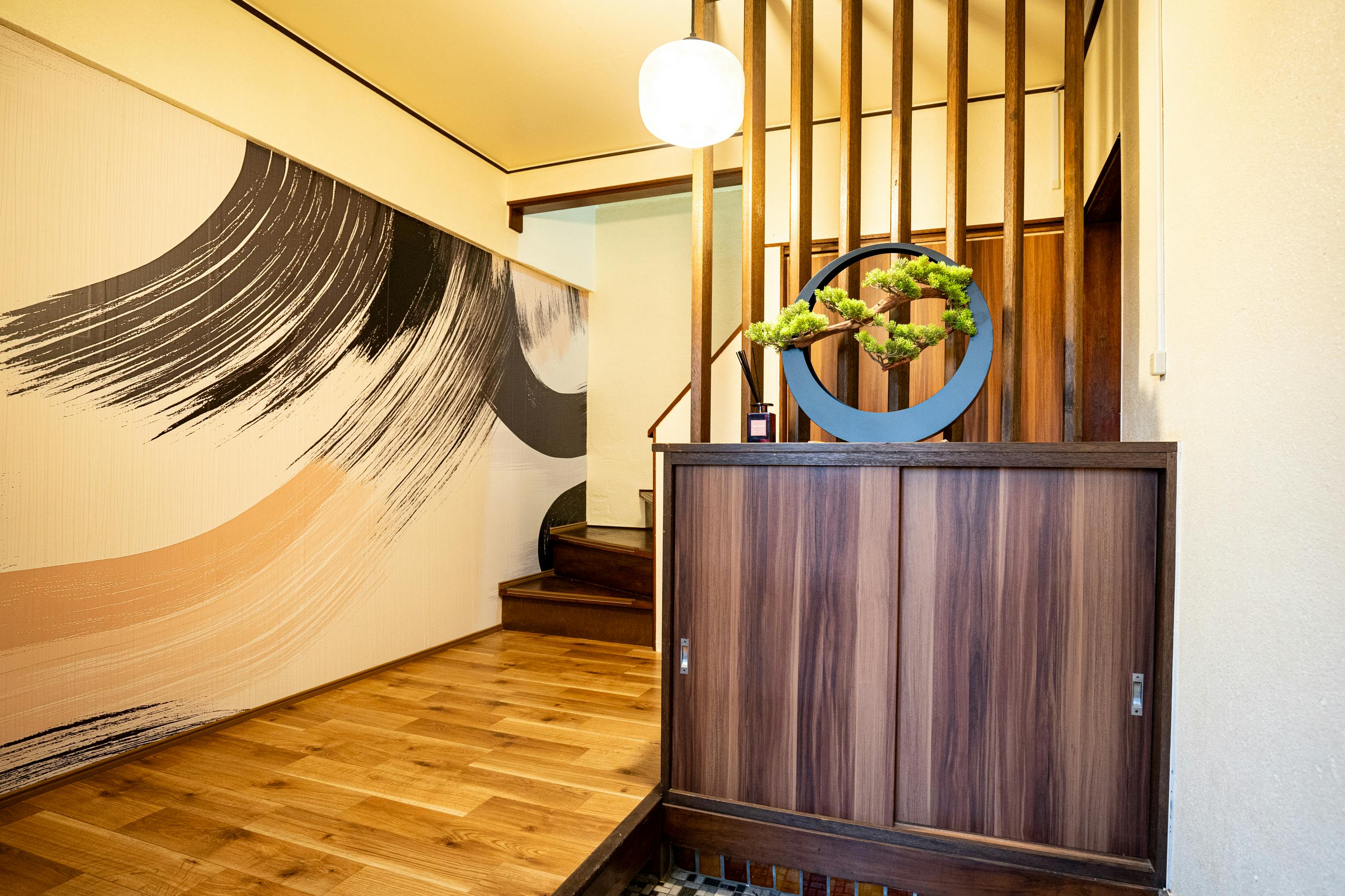 本物の木の手触り、墨が描くアートの力、そして季節ごとに変わる庭の景色。