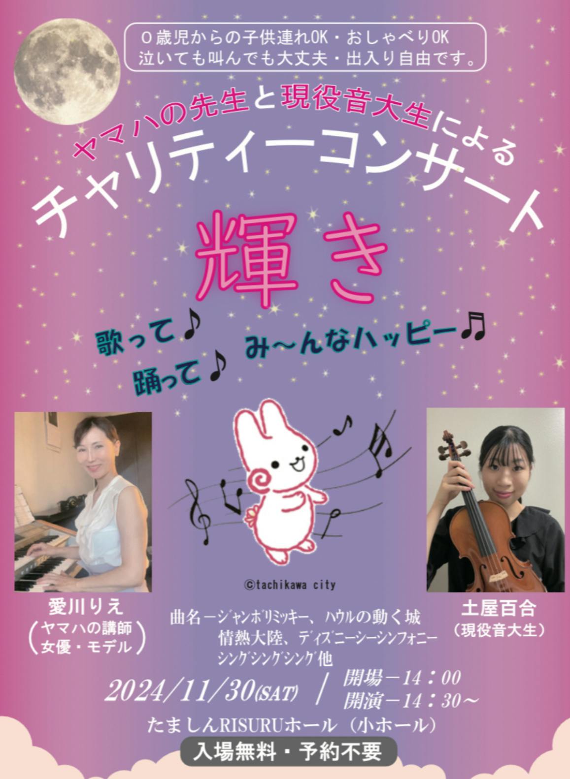 これまで立川を中心に、音楽と語りの舞台公演や幼児も参加OKのチャリティーコンサートを開催、また月1~2回、有名俳優による朗読勉強会等をしています。