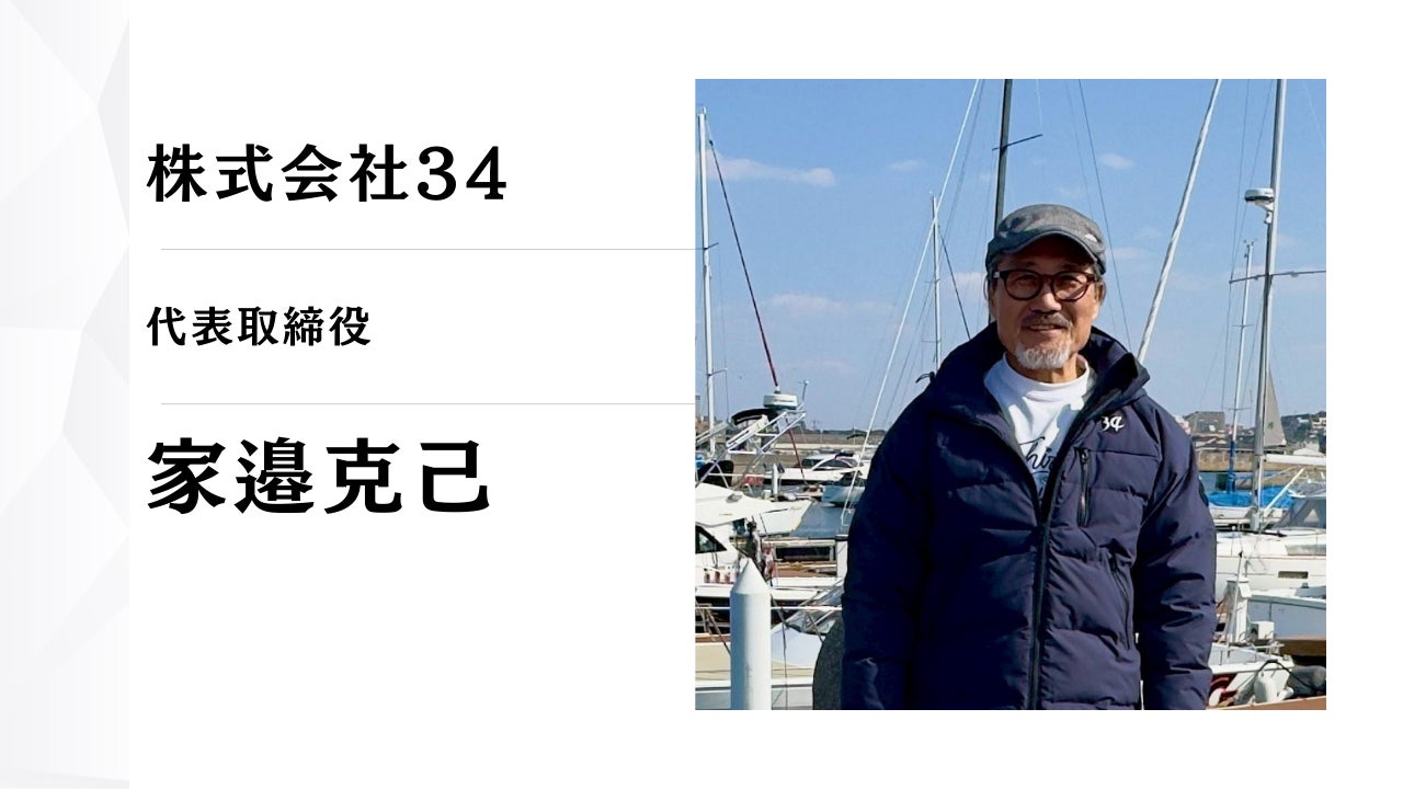 はじめまして。株式会社34 代表取締役の家邉克己です。