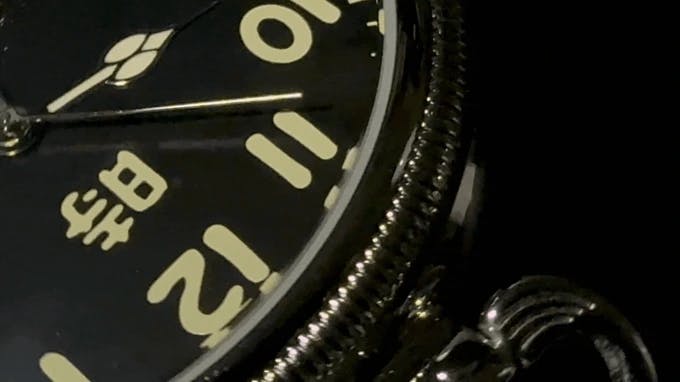 夜光インデックスはスーパールミノーバ(100式飛行時計のみ)を使用しています。視認性を追求して作られており、暗闇で素早く時刻を確認したい時にも抜群の機能を発揮します。ミリタリーウォッチのDNAを受け継ぎ、昼夜を問わず優れた視認性を備えています。