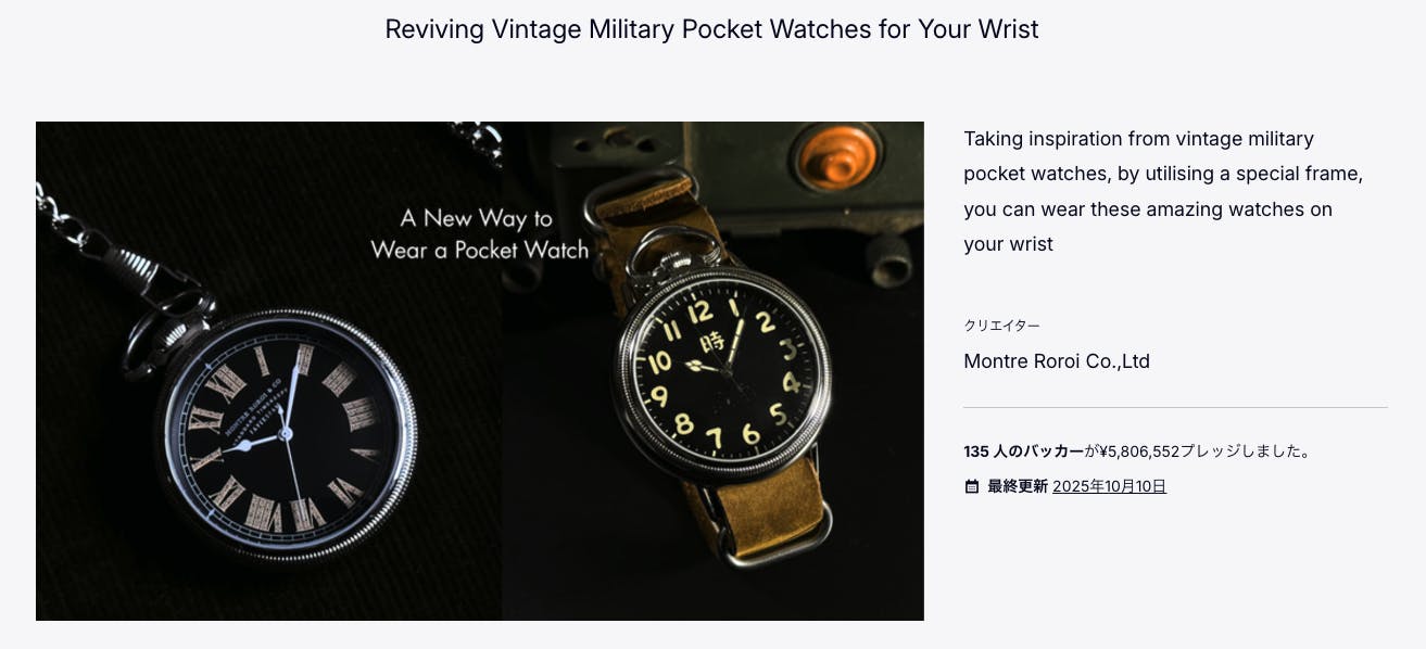 このプロジェクトは、日本の職人技と伝統の結晶である時計を世界中のユーザーにお届けするために生まれました。しかし、私たちは大企業ではありません。だからこそ、一本一本を丁寧に作り上げています。CAMPFIREを通じて、私たちの時計の魅力を直接お伝えし、皆様のご支援を頂戴しながら、一歩一歩前進していきたいと考えました。