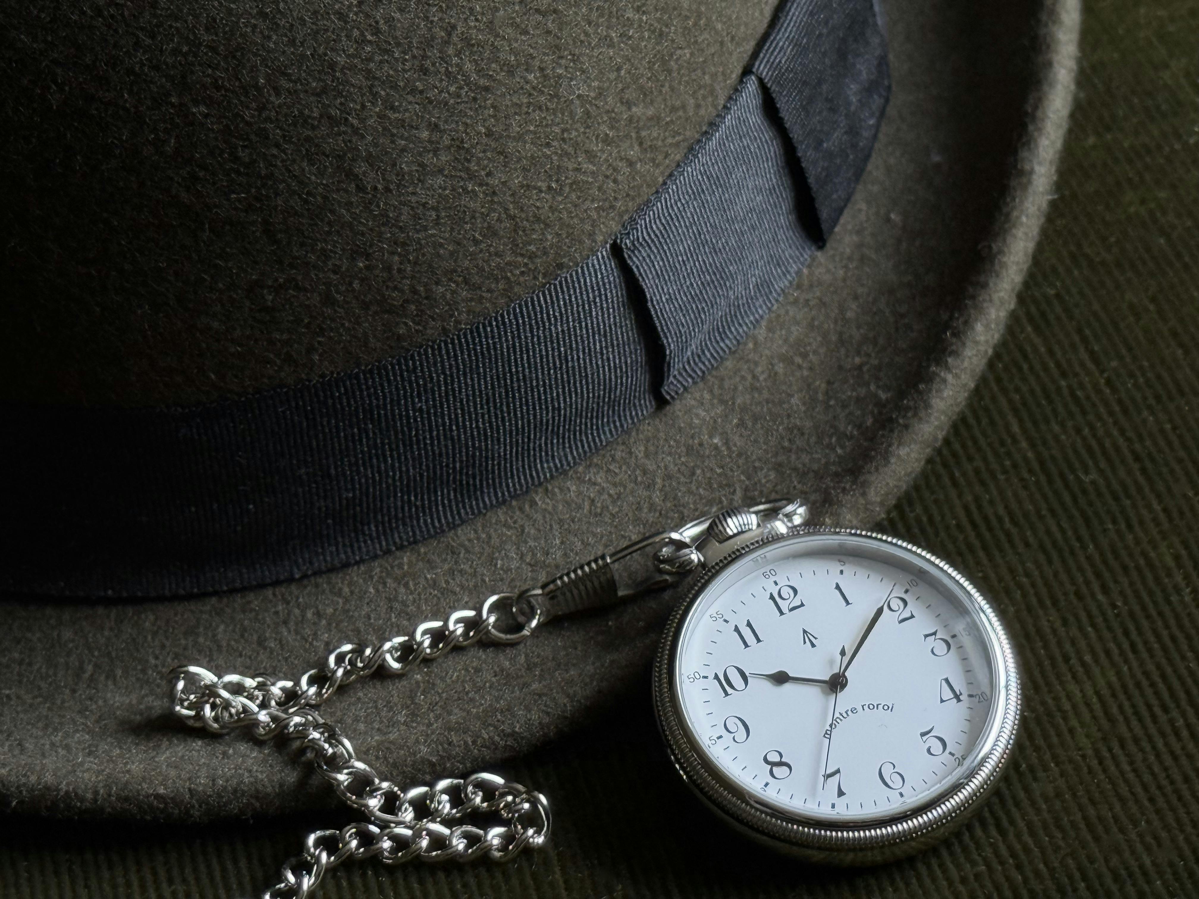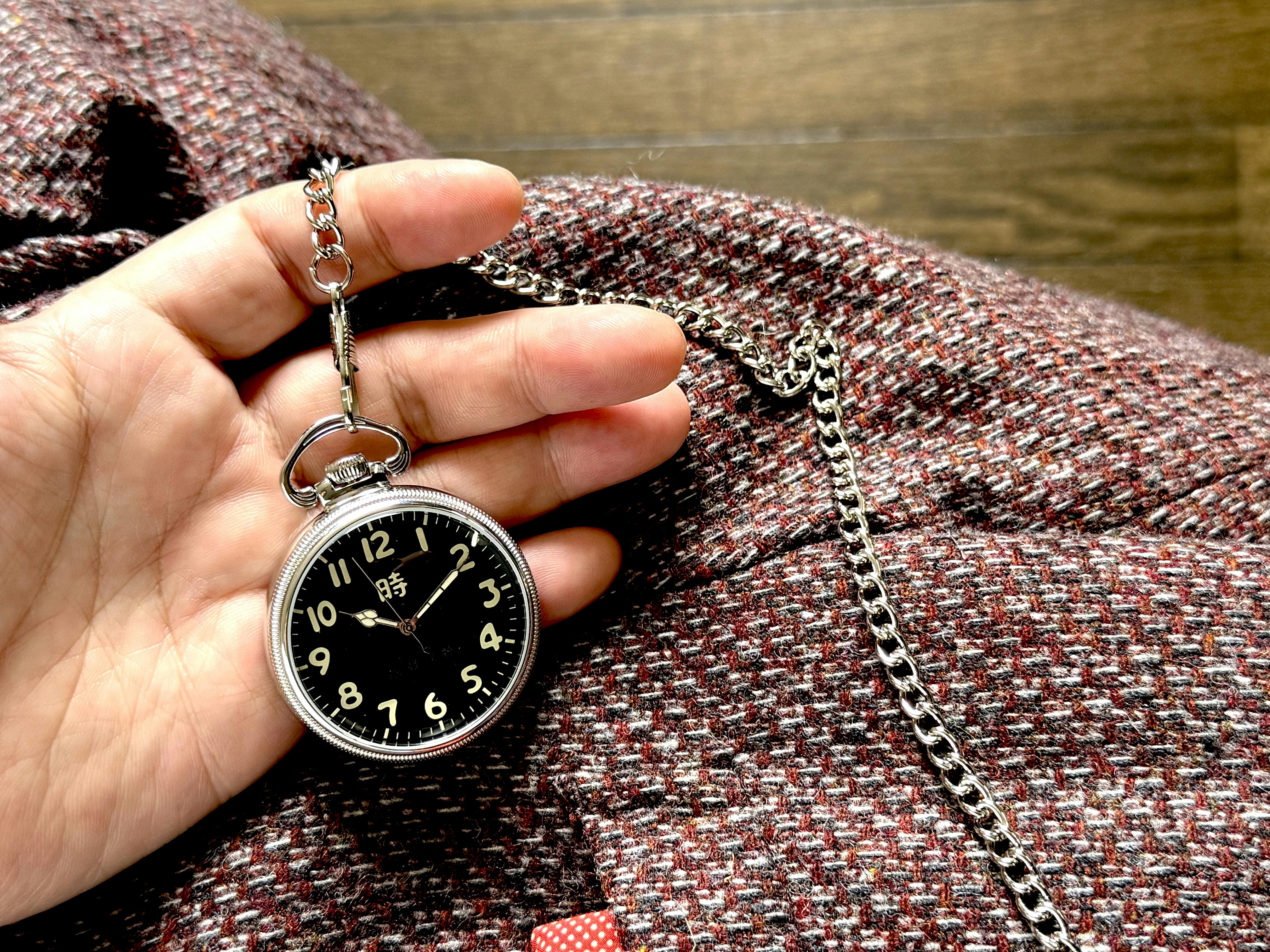 チェーンをたぐり寄せ、ポケットから取り出す仕草は、懐中時計の楽しみ方の『醍醐味』です。