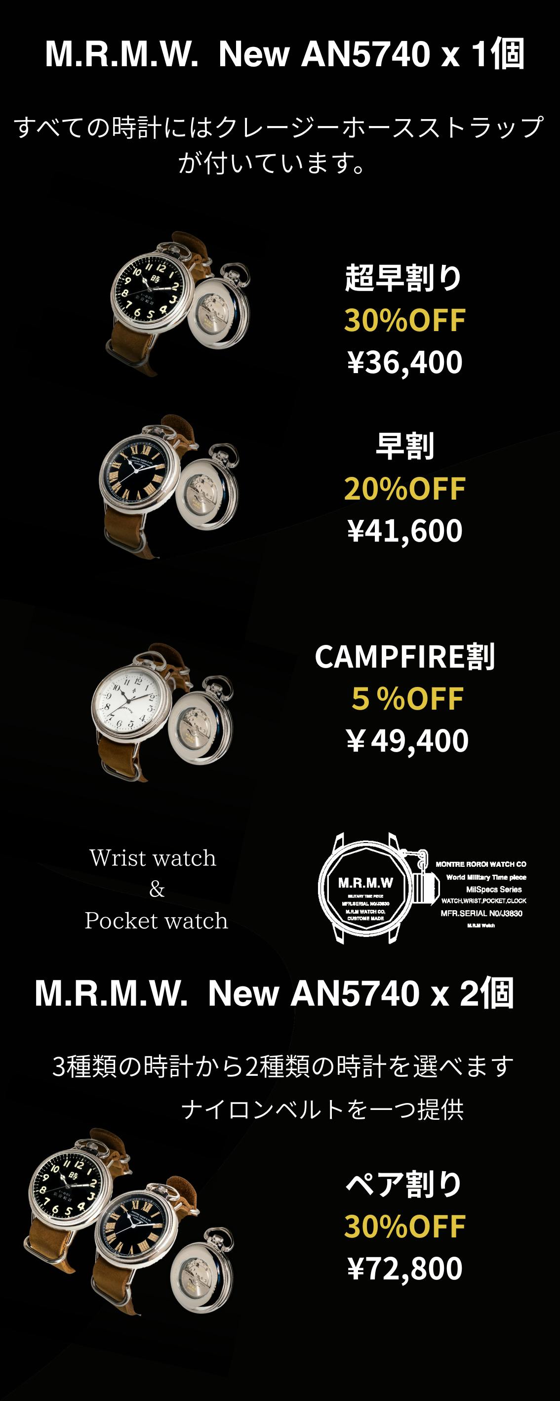 2025/11/03 17:43いつの時代も愛される時計創りを目指しております。M.R.M.W.は今まで世界中の名作ミリタリーウォッチを復刻してまいりました。創業20周年を記念して懐中時計にも腕時計にもなる(意匠登録済)人気のAN5740をステンレスケース・国産機械式ムーブメント・サファイヤガラスを搭載しバージョンアップしました。 もっと見る