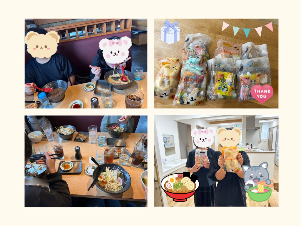 最近では、近隣のラーメン屋あお空さんの店主の方が、子ども達をお店に招待してくださり、トッピングたっぷりのラーメンと餃子をご馳走してくださいました。帰りにはおもちゃやお菓子のお土産を持たせてくださり、温かいお気持ちに感謝しています。