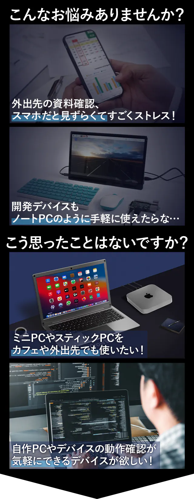 でも社用PCは重いし持ち歩きたくない…。そんな時にCrowView Noteの存在を知り、これだ!!と思いました。