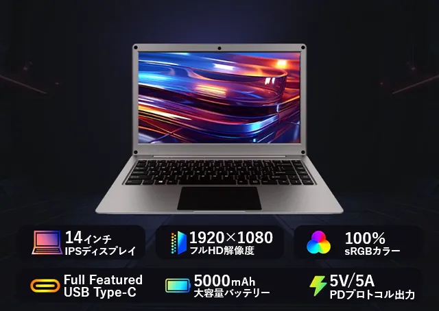 5000mAh大容量バッテリー搭載で出先でも使いやすい!