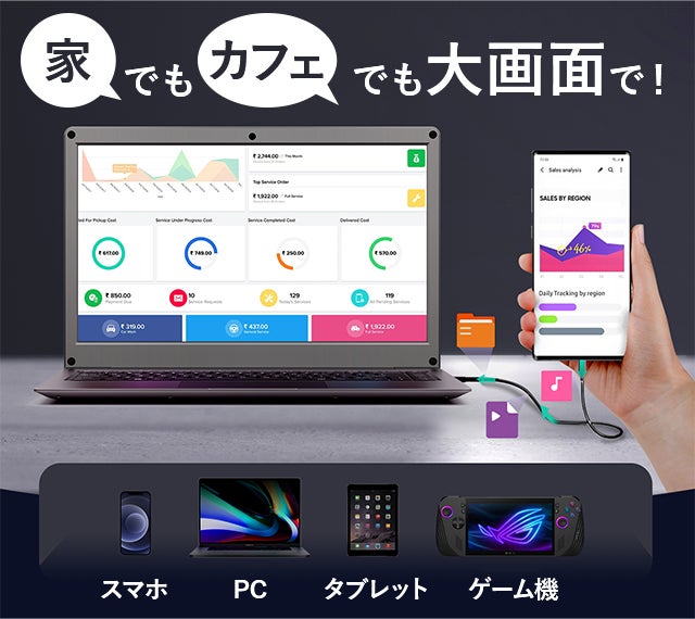 業務にも趣味にも幅広く使える、持ち運びにも便利なモバイルモニターです!(※対応スマホ:DisplayPort Alt Mode対応のAndroid、iPhone15)