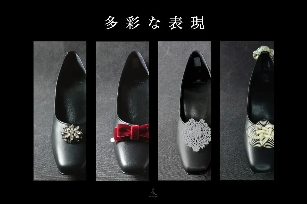黒の葬儀用オンリーだったものが、飾り1つで素敵なお出かけ靴になるなんて、とっても嬉しいアイデアですね💚