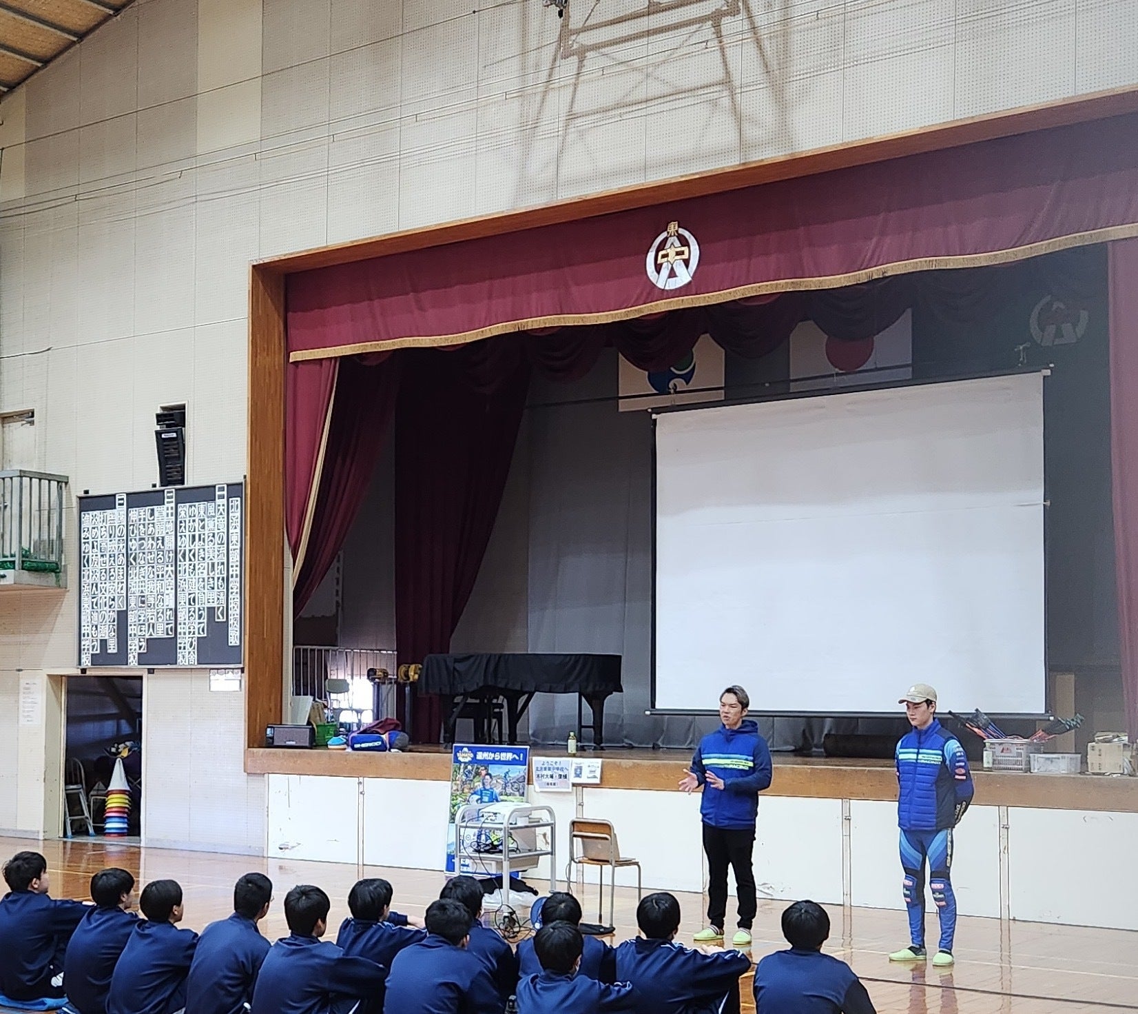 最初は初対面もあり、何処となく不安そうな生徒も、最後は一緒に頑張ろうぜ!みたいに、一気に距離感も縮まり寒い体育館でしたがやる気という「熱」を感じました。
