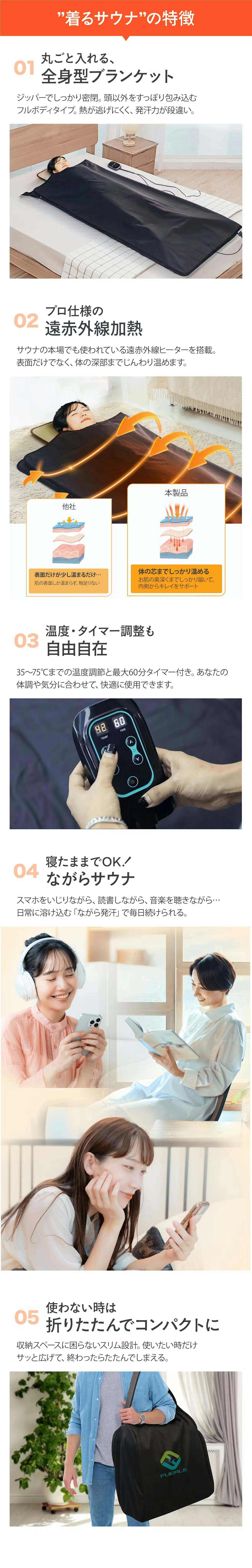 運動やお風呂上がりにもうひと汗かきたいときや、仕事終わりにリラックスしたいときにも最適です。日々の健康維持やボディメイクを意識する方、肌のコンディションを整えたい方にも嬉しい効果が期待でき、自分のペースで好きな時間に使えるので、まるで自宅にプライベートサウナを持っているような心地よさを楽しめます。
