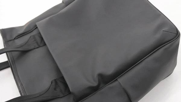 TOUGH NARROW TOTEには、14インチまでのノートPCがすっきり収まるクッション付きポケットがあります。