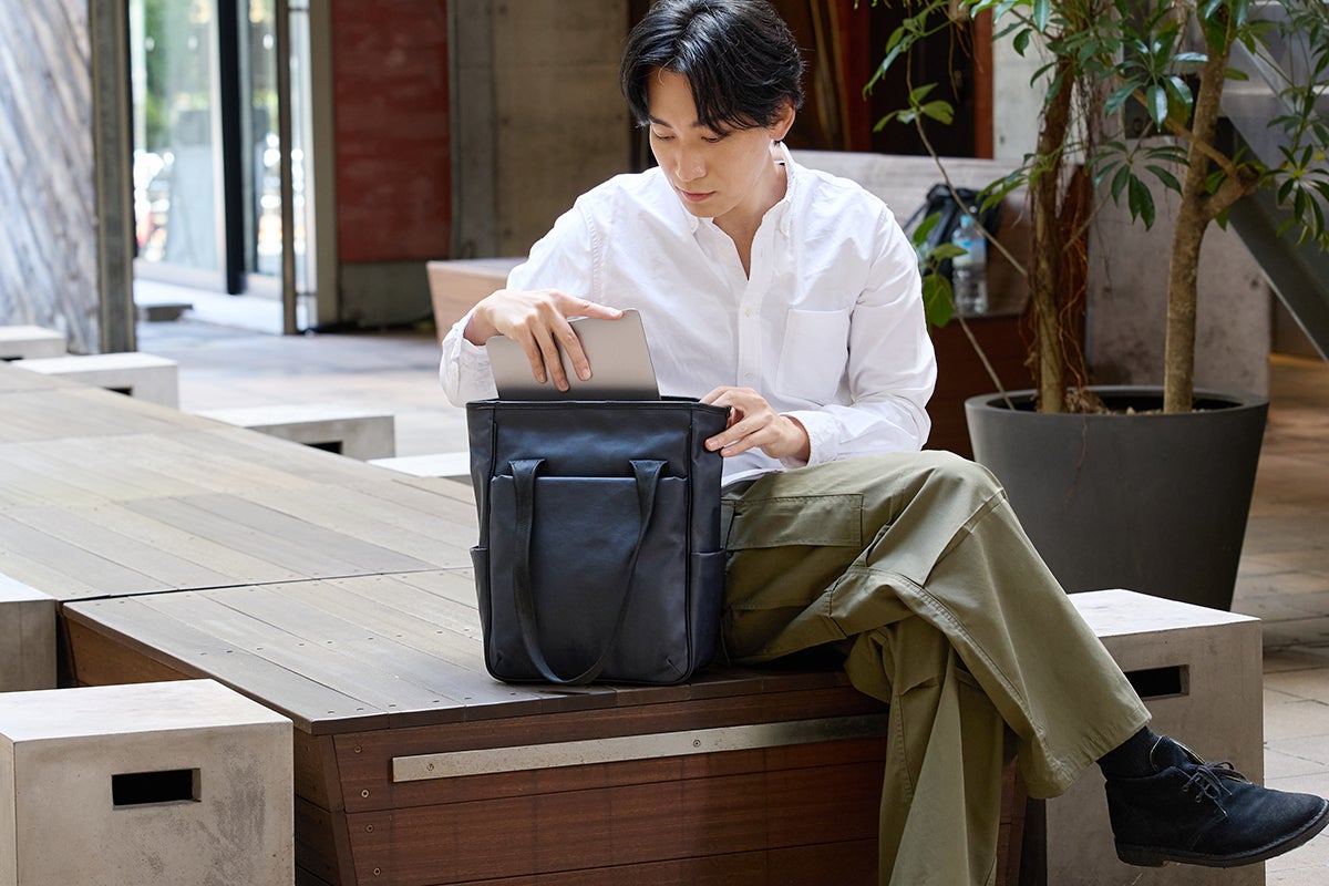 コンパクトなトートバッグなので、カフェなどで行うノマドワークにも最適です。