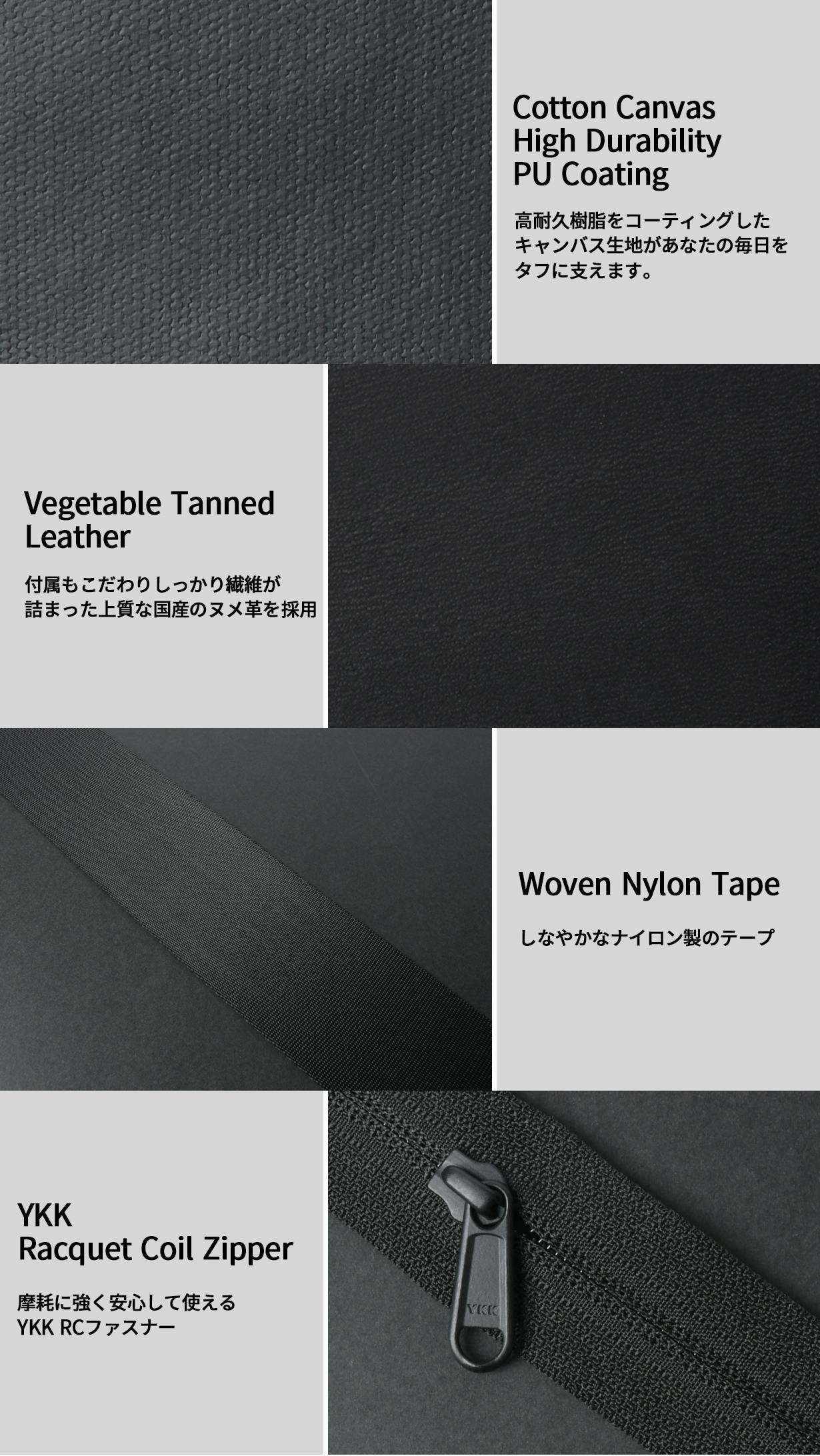 この高耐久キャンバス生地は、経年劣化にも耐性があるので長く愛用して頂けます。
