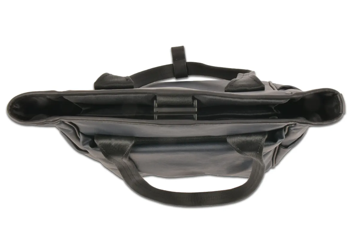TOUGH NARROW TOTEには、14インチまでのノートPCがすっきり収まるクッション付きポケットがあります。