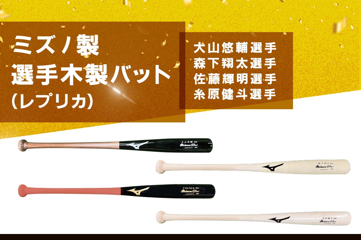 その他、先日「NPB AWARDS 2025 supported by リポビタンD」において、セ・リーグ最優秀選手として選ばれた佐藤輝明選手をはじめ、大山悠輔選手、森下翔太選手、糸原健斗選手の木製バット(レプリカ)もありますので、ぜひご支援をご検討ください!