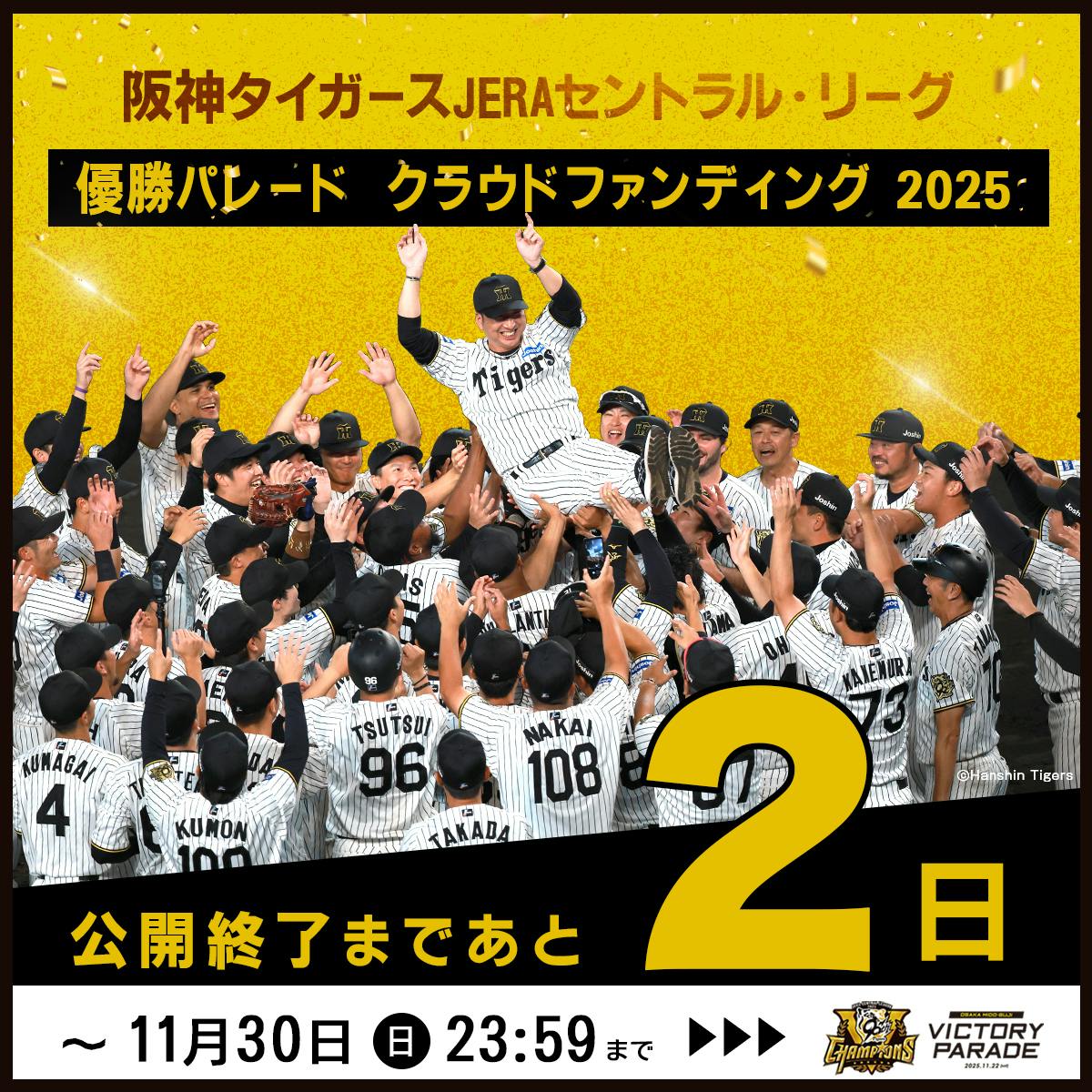 阪神タイガース優勝記念パレードのクラウドファンディングの支援終了まであと2日に迫っています。