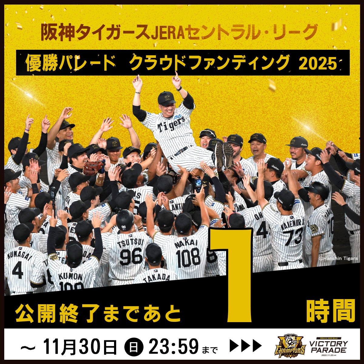 阪神タイガース優勝記念パレードのクラウドファンディングの支援終了まで残り1時間となりました。