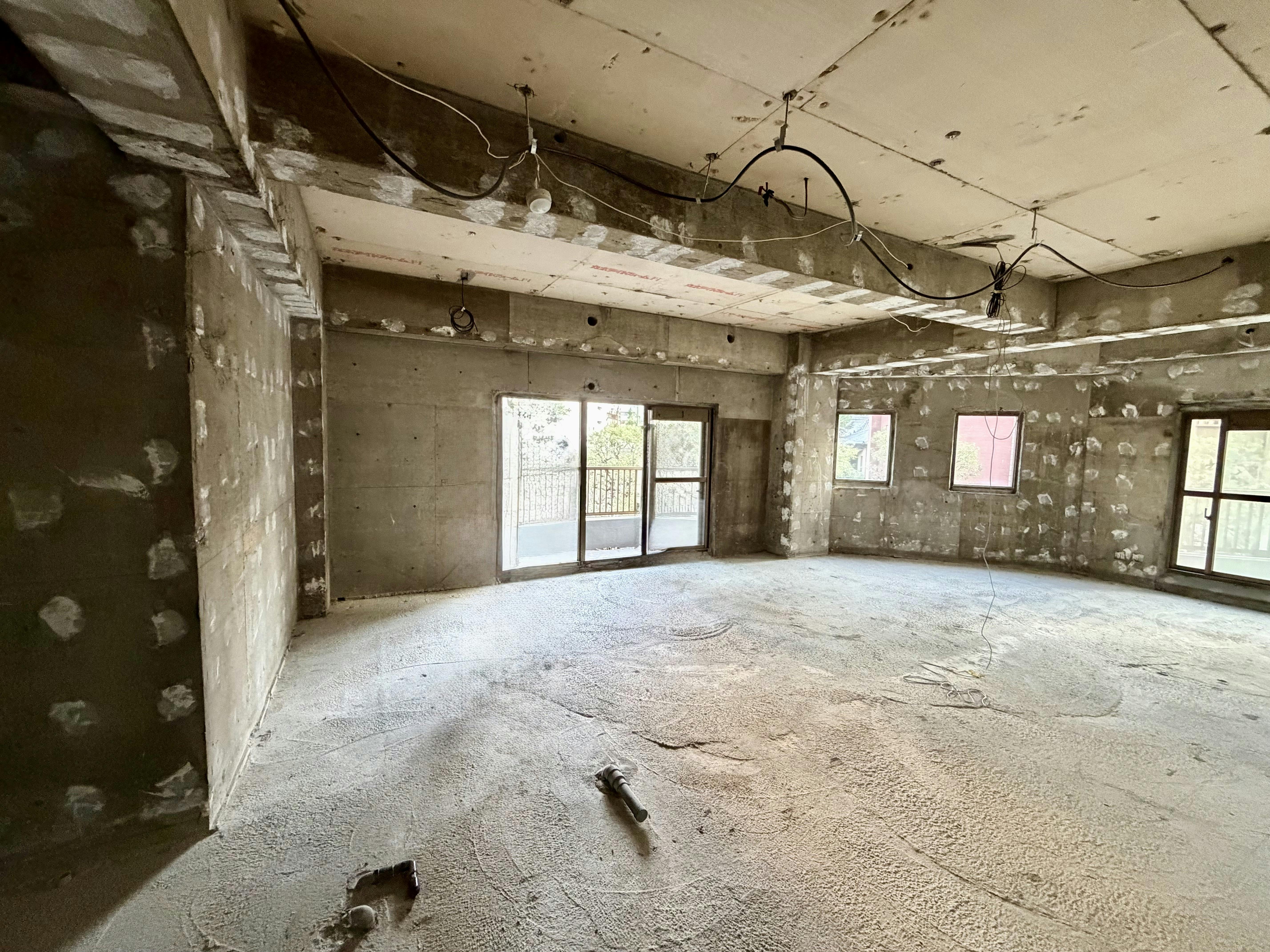 現在写真の通り完全スケルトン状態なので、内装工事へ向けて打ち合わせを行なっております。内装はコンクリートの無骨さも活かしつつ、シンプル イズ ベストなイメージで仕上げていく予定です。