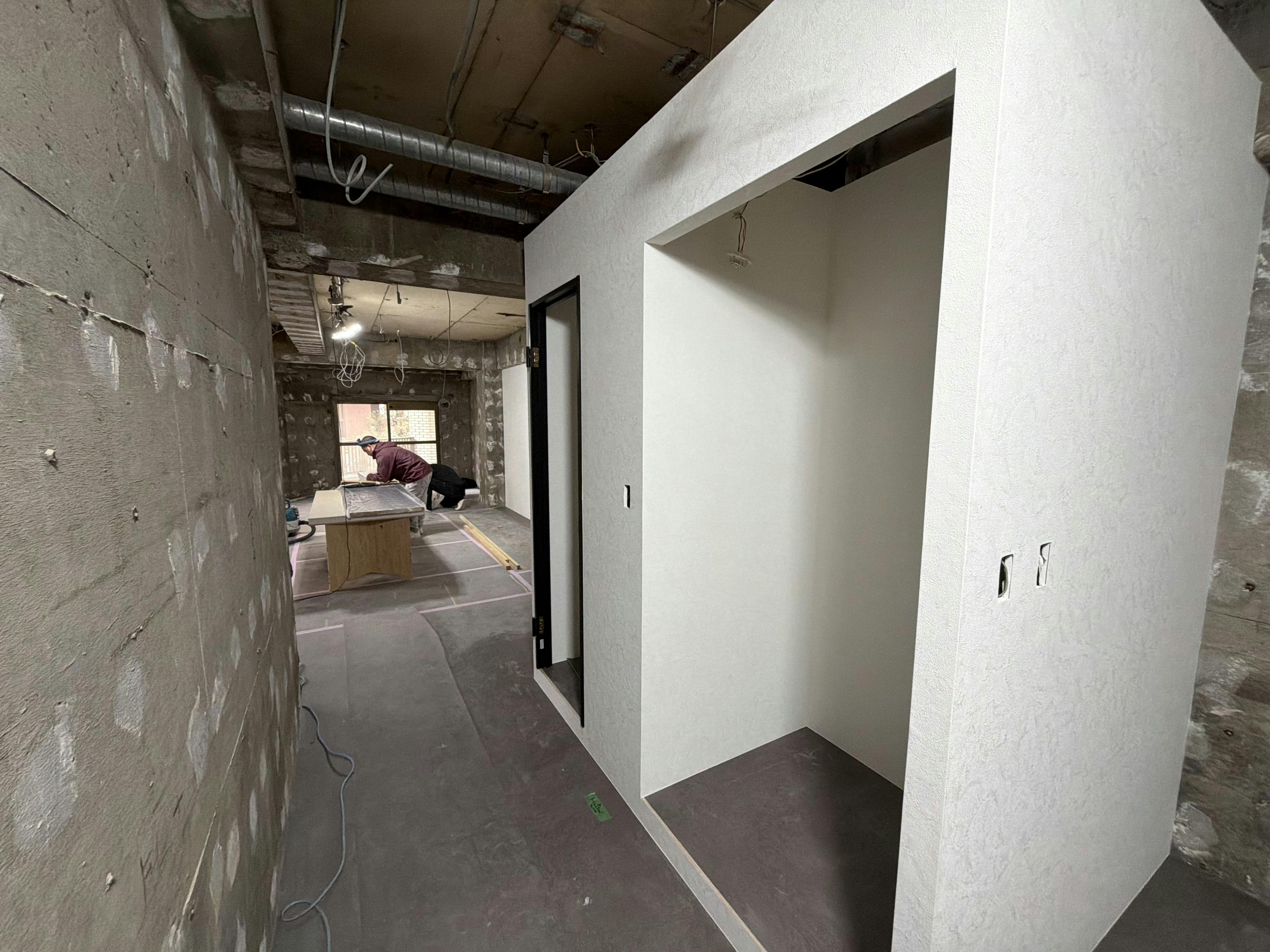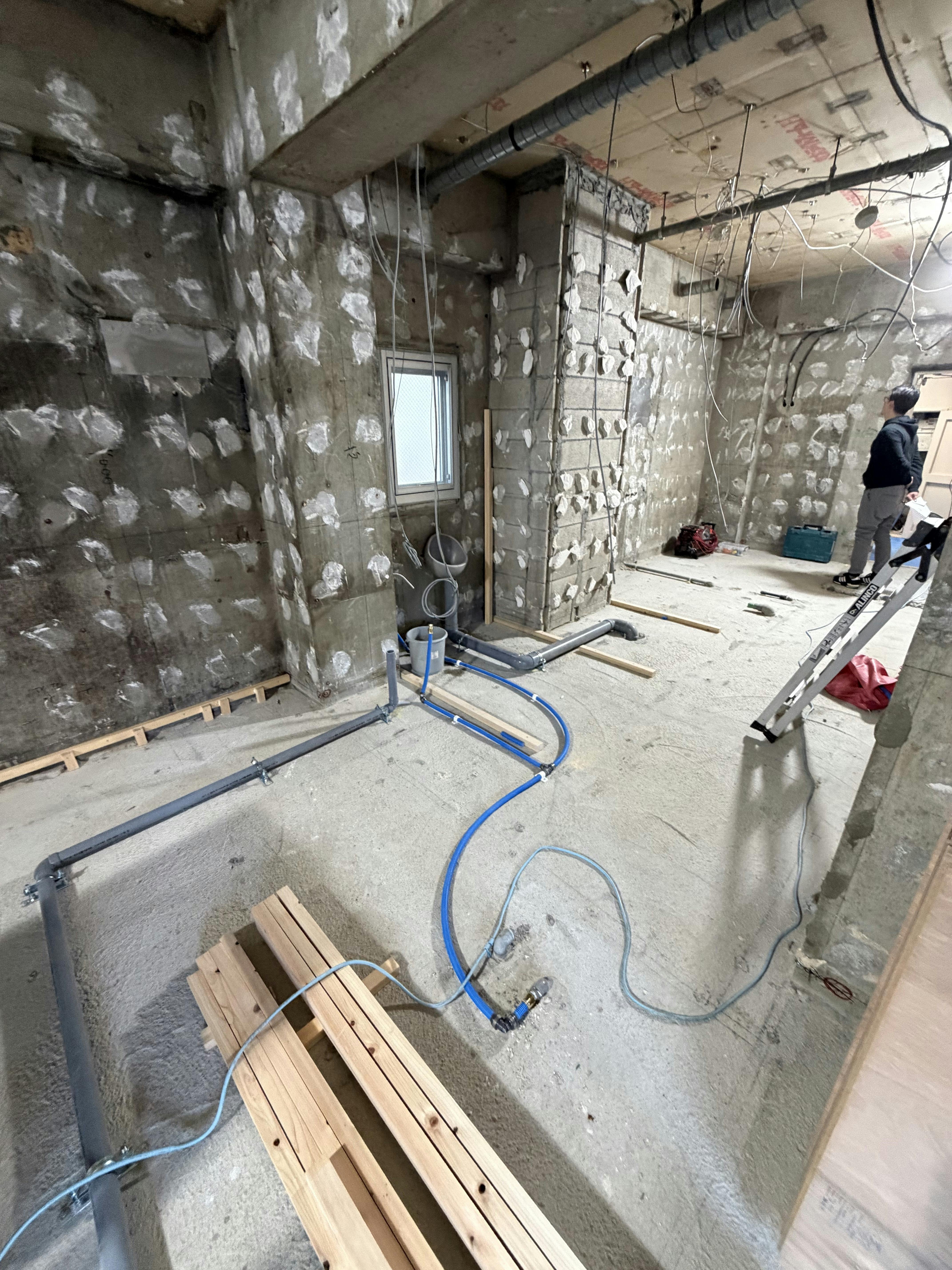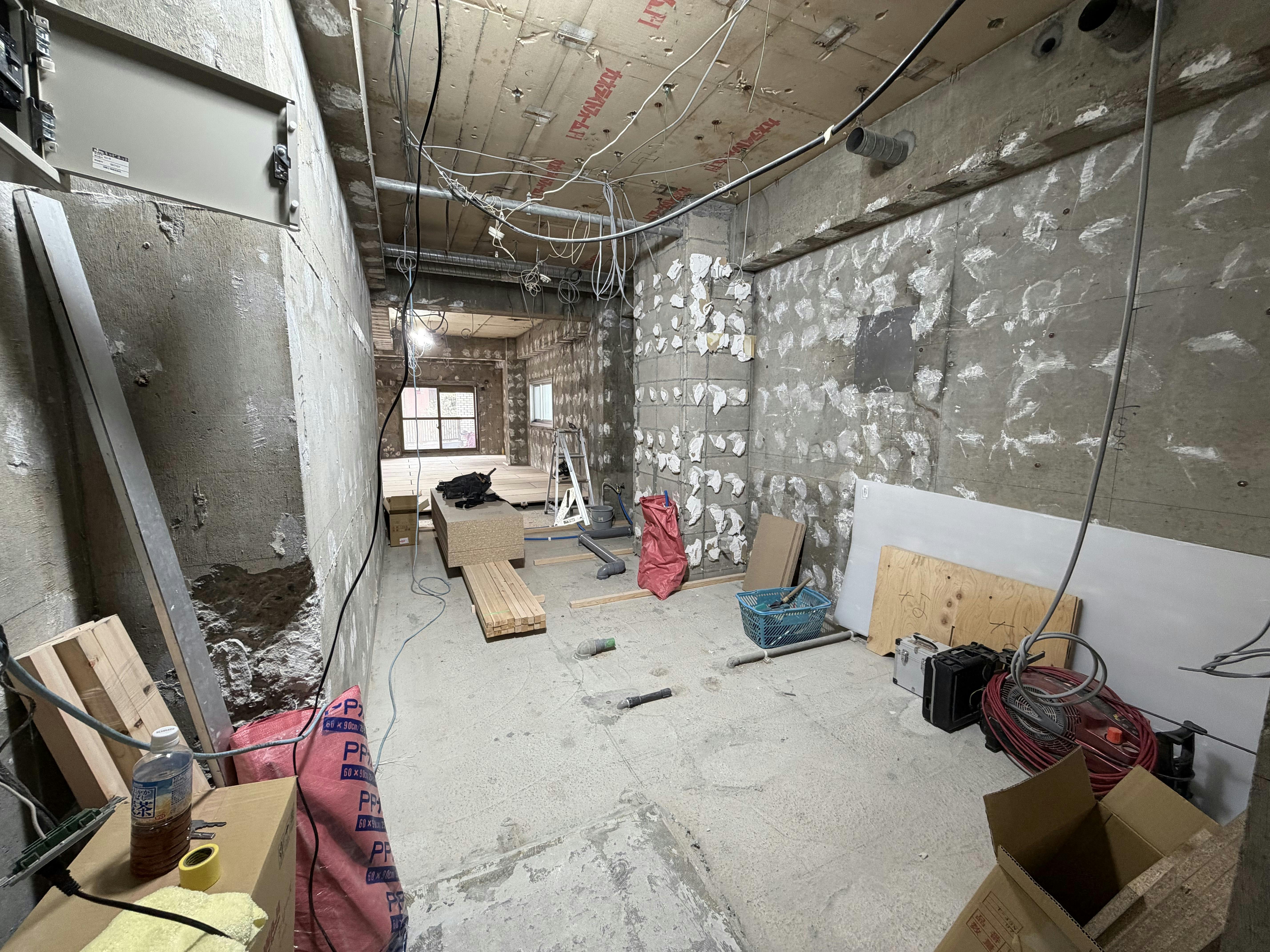 床や壁、トイレや更衣室、カウンターなどの構造が出来上がってきており、一気に雰囲気が変わりました!