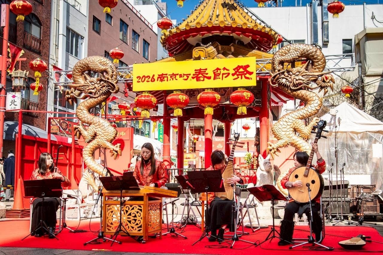 広場では中国の伝統音楽、獅子舞などさまざまな演目が披露され、