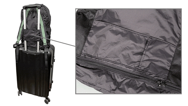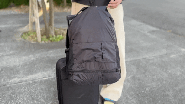 荷物が多い時のサブバッグとして、別のリュックに被せて装着できます。