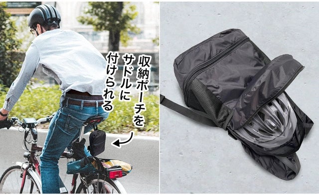 自転車用ヘルメットも本体にすっぽり収納可能。サイクリストにも大好評です。