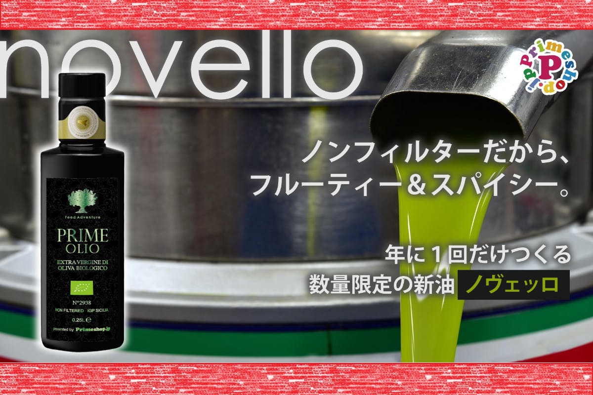 フードアドベンチャーのブランドでは、「プライムオーリオ」のシリーズ名で数々のオリーブオイルを企画してきましたが、今回は初の「新油ノヴェッロ」を企画いたします。