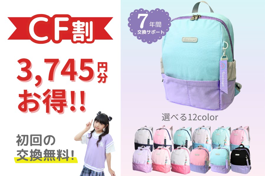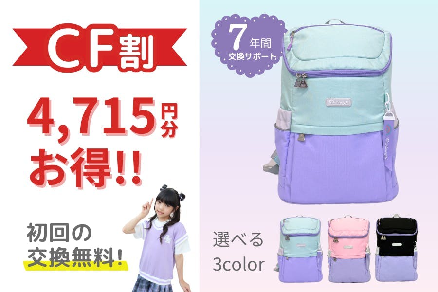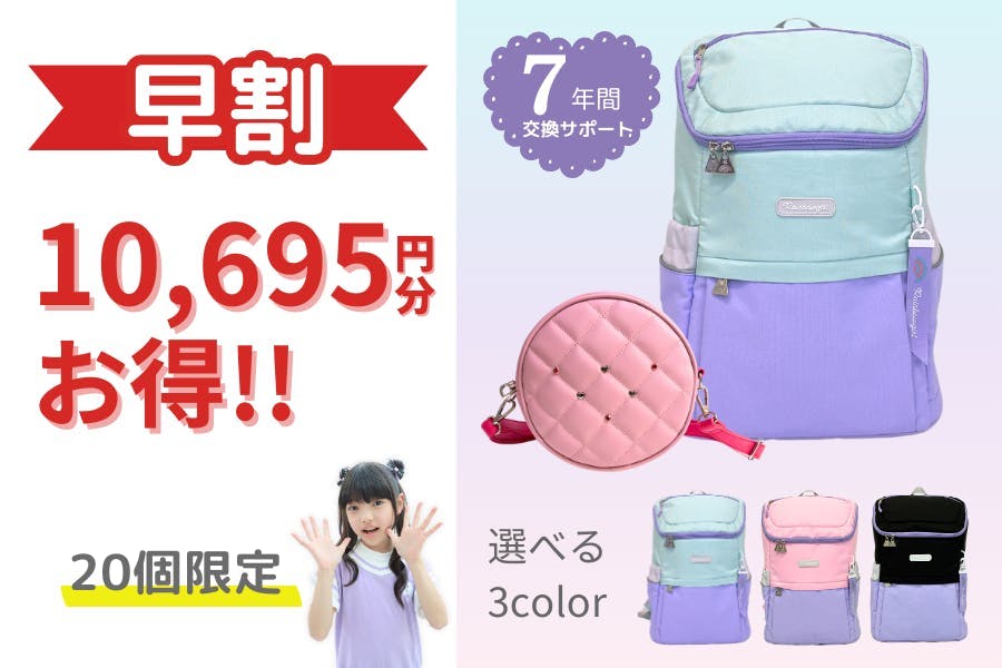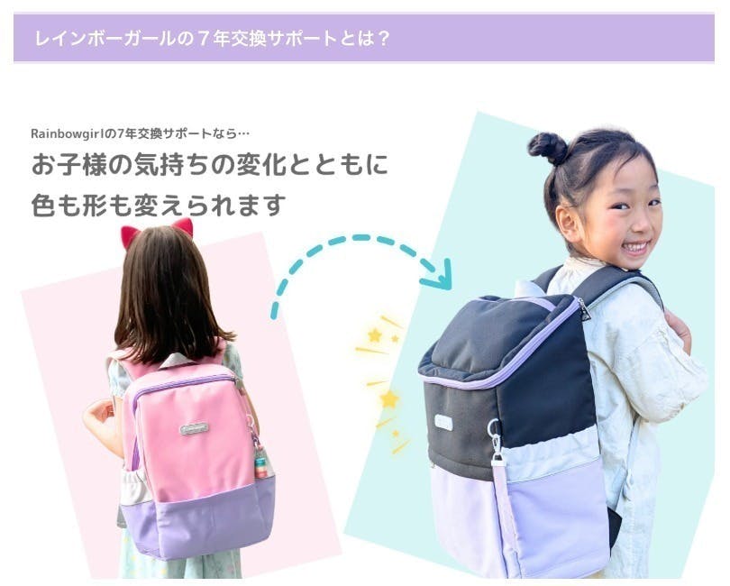 7年間交換サポート付き「レインボーガール」の通学リュック