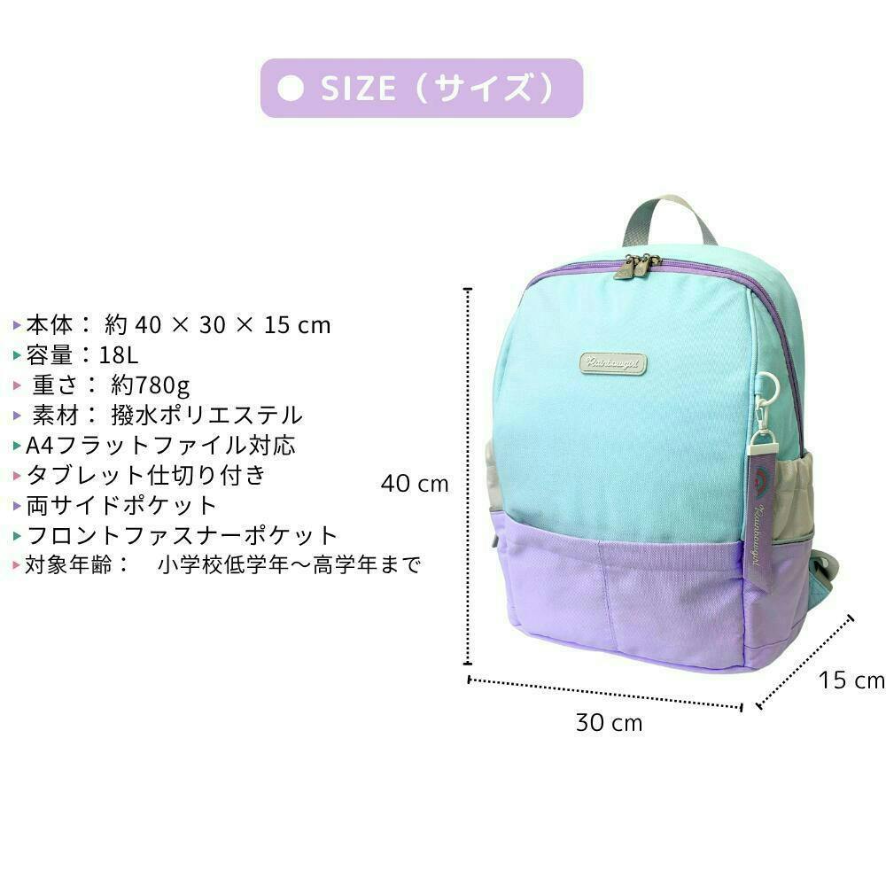 ・長く使えるリュックサックを探していました。大きさはランドセルとほぼ同じ大きさで小1の娘も使いやすそうです。大きめの教科書も余裕で入るし学童でも使いやすそう。付属のキーホルダーもリュックに合っていて可愛いです。好みのキャラクターがコロコロ変わる子なのでシンプルでバイカラーなのは周りと被らず良かったです。