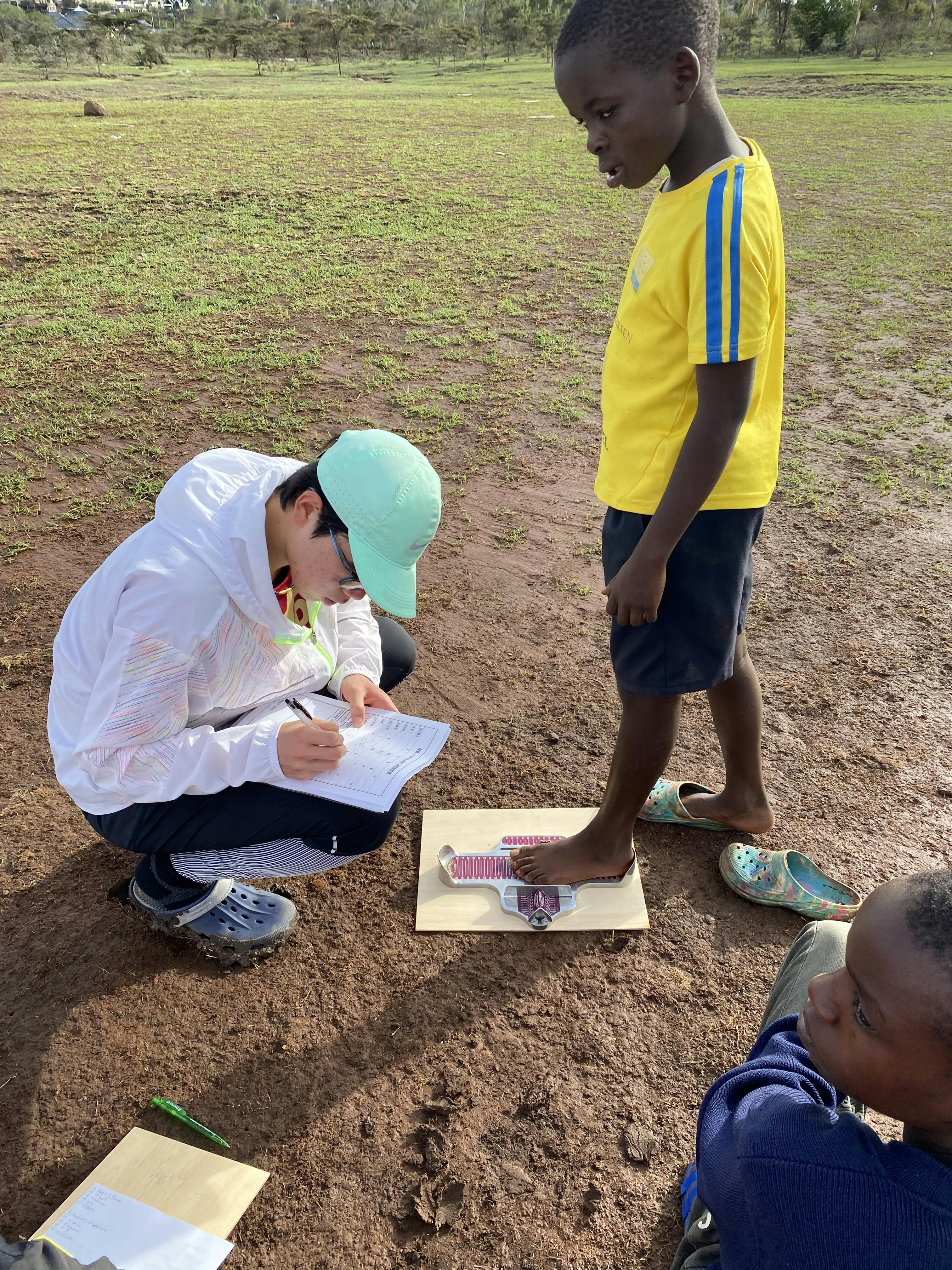 高等学校を卒業した後、私は一度ケニアを訪れた経験があります。当時、「ケニア人ランナーの圧倒的な速さと強さの秘密はどこにあるのか」を探りたいという思いから、現地で約100名のケニア人ランナーの足裏を年齢別に測定し、走りの基礎となる身体的特徴や環境要因との関係性を分析しました。