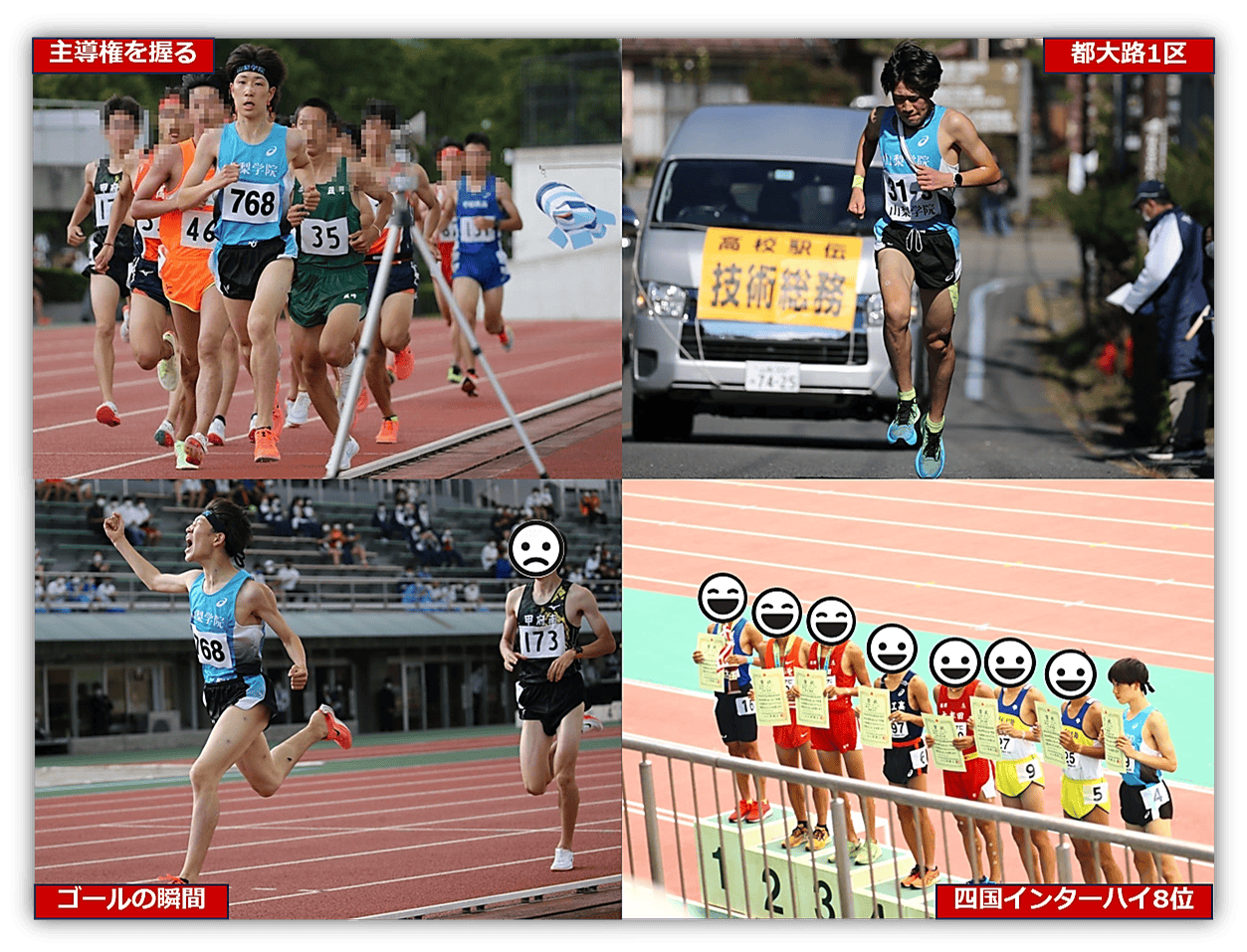 私は高校生の時に本格的に陸上競技を始め、山梨学院高校では、2年時にチームの一員として全国高校駅伝に出場しましたが、最後の3年時には左大腿骨の疲労骨折により、出場することができませんでした。