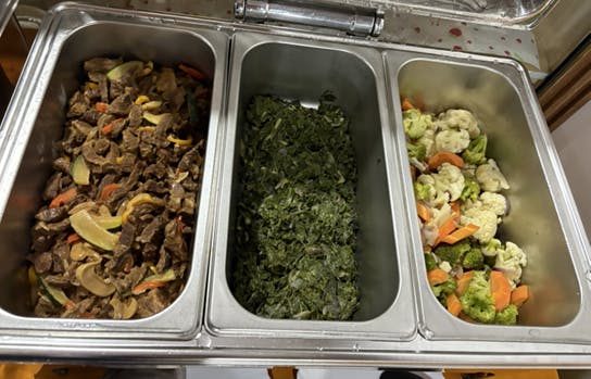 おかずの中でも、特にケニアらしさを感じたのが「マナグ」と呼ばれる葉物野菜です。マナグはアフリカ原産の野草の葉で、ケニアでは昔から食べられてきた伝統的な食材として親しまれています。少し苦みがありますが、鉄分やビタミン、βカロテンなどが豊富に含まれており、茹でたり炒めたり多様な方法で調理されることで、とてもさっぱりした仕上がりになります。