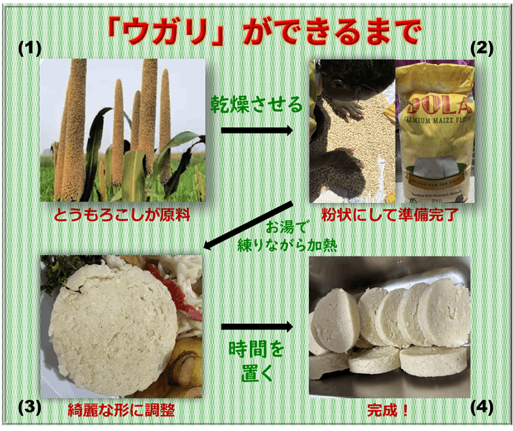 〈ウガリの調理工程〉