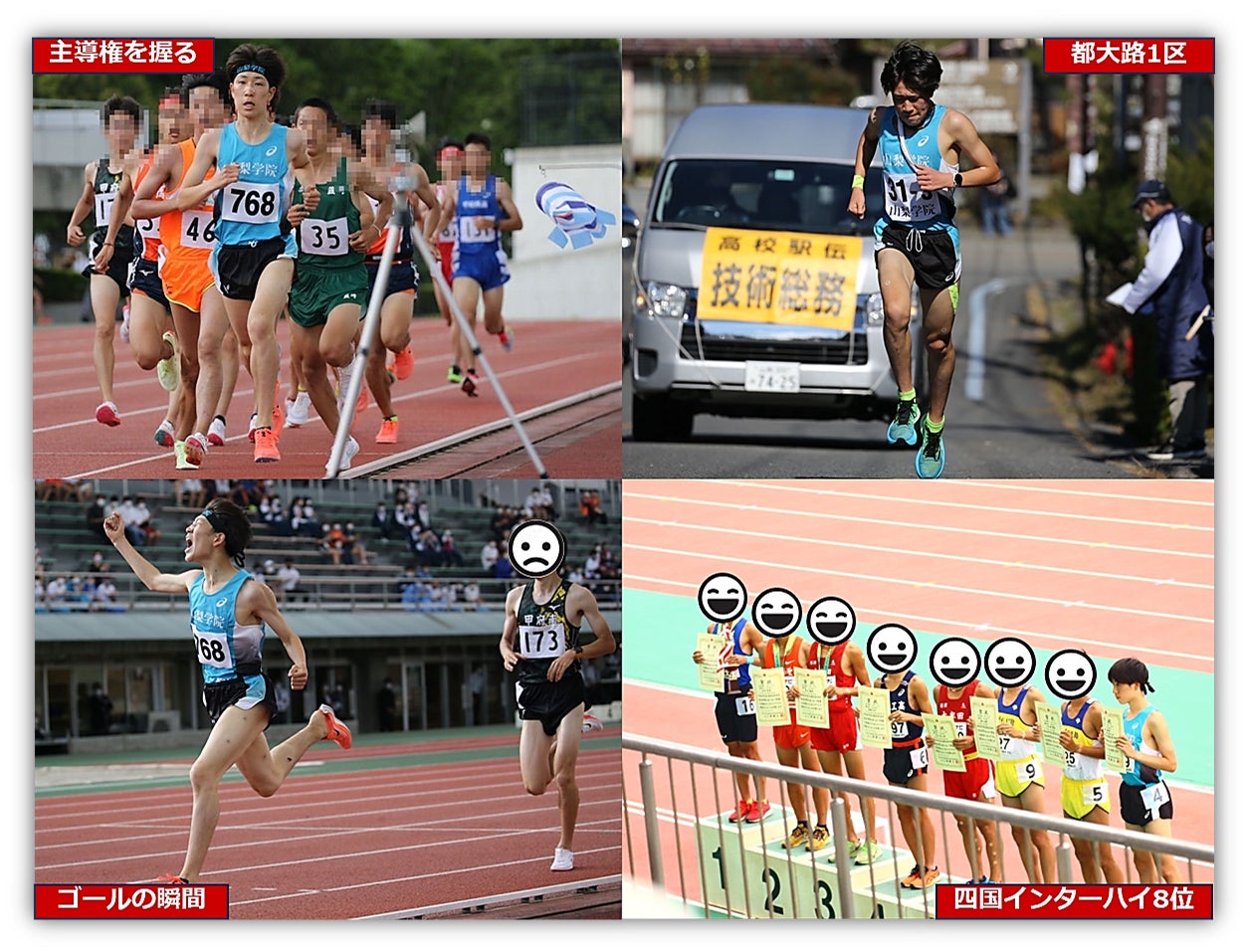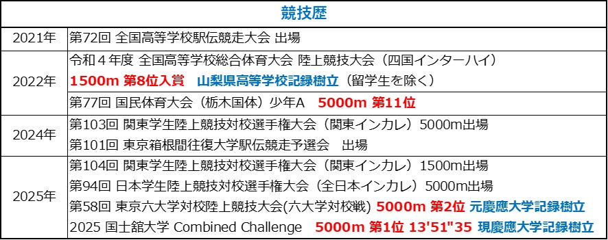 私は高校生の時に本格的に陸上競技を始め、山梨学院高校では、2年時にチームの一員として全国高校駅伝に出場しましたが、最後の3年時には左大腿骨の疲労骨折により、出場することができませんでした。